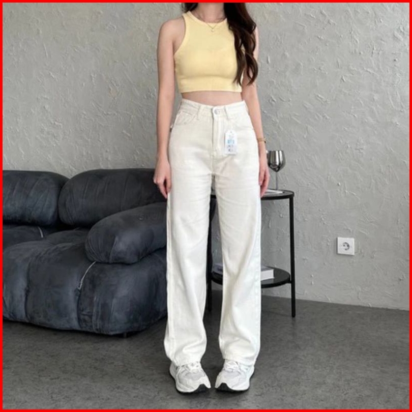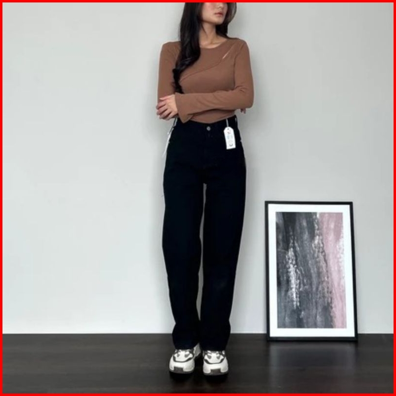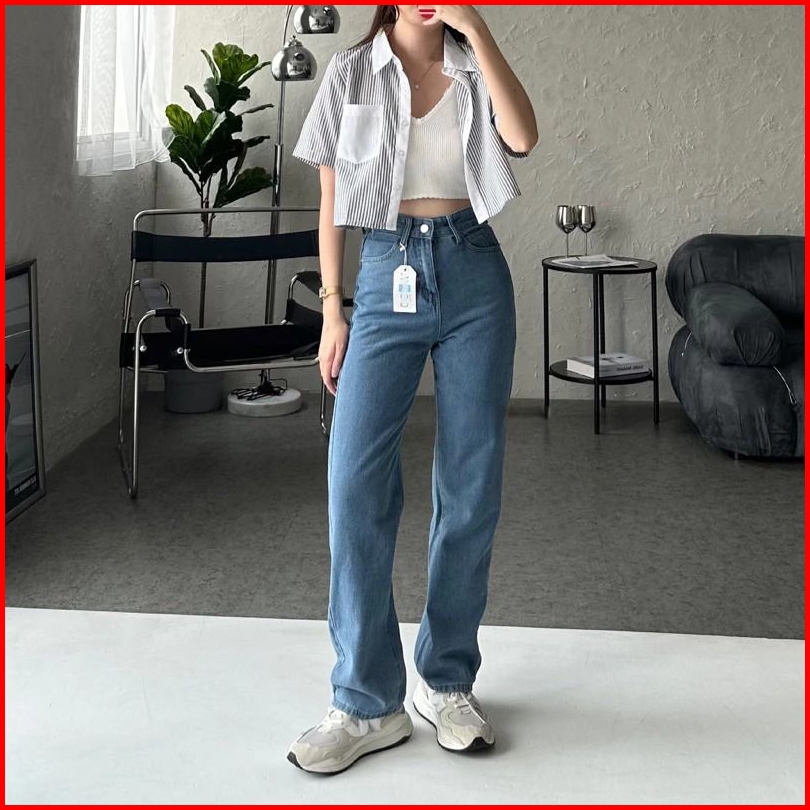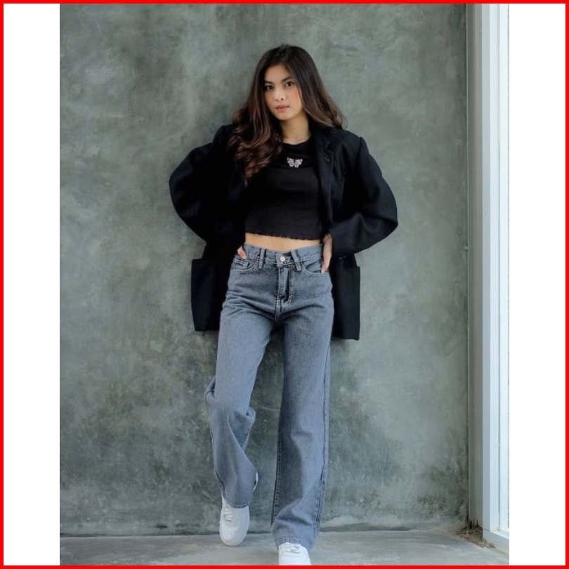 Hansfcty Dax Jeans - Celana Jeans Wanita Highwaist Straight Cut Import Panjang Korea Loose Premium Quality Highwaist Kul