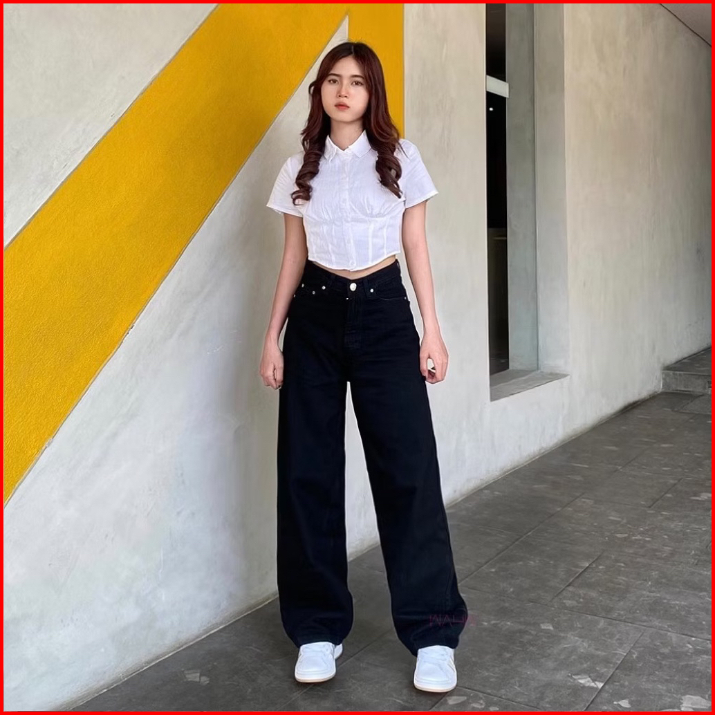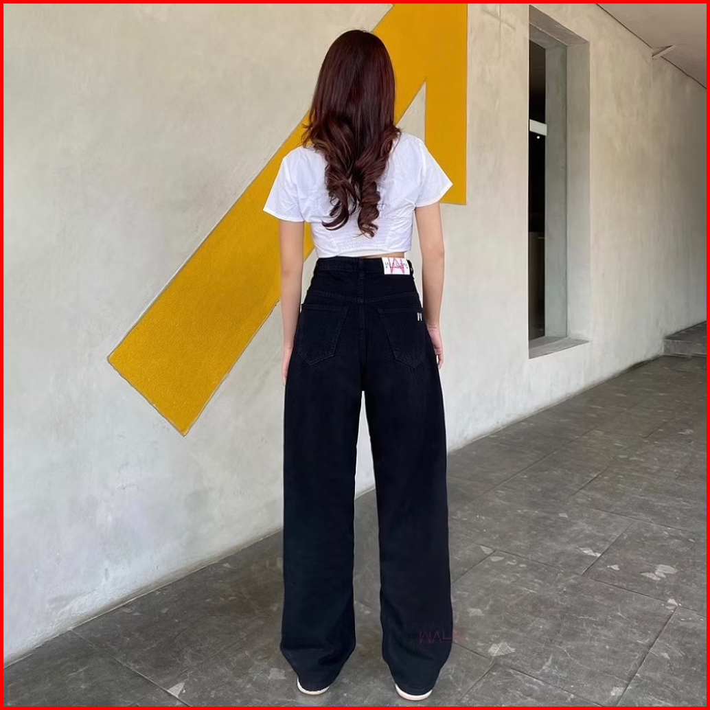 Nenjie - Higwaist Loose Jeans Black Level Up Jumbo Terbaru