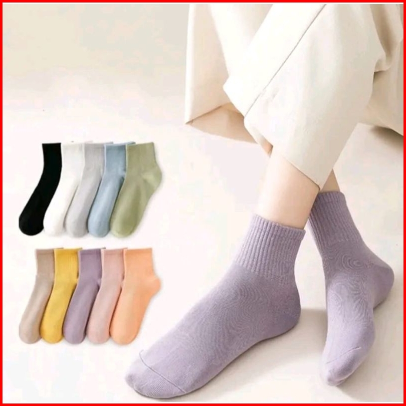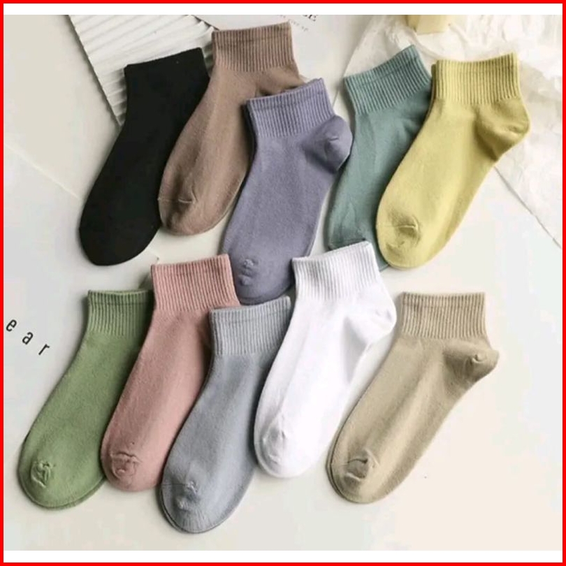 Paket 12 Pasang Kaos Kaki Polos Wanita Dewasa Remaja Pendek Diatas Matakaki
