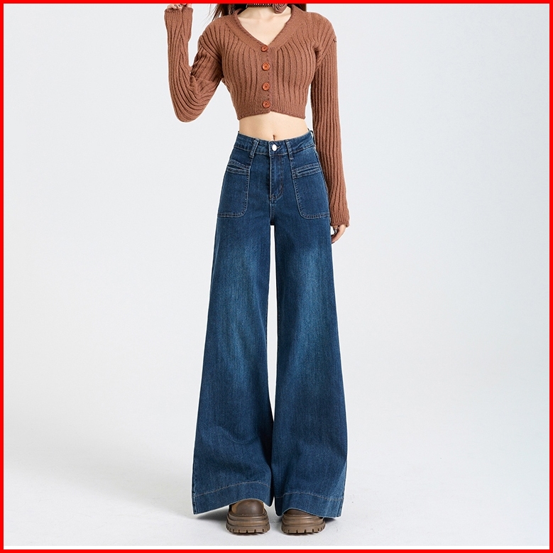 Wanita Id Ready Stock Biru Tua Loose Pants Celana Jeans Panjang Wanita Celana Highwaist Celana Straight Ootd