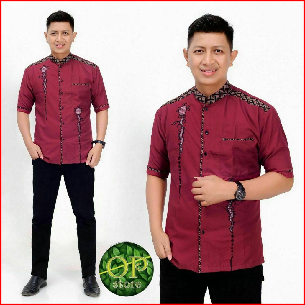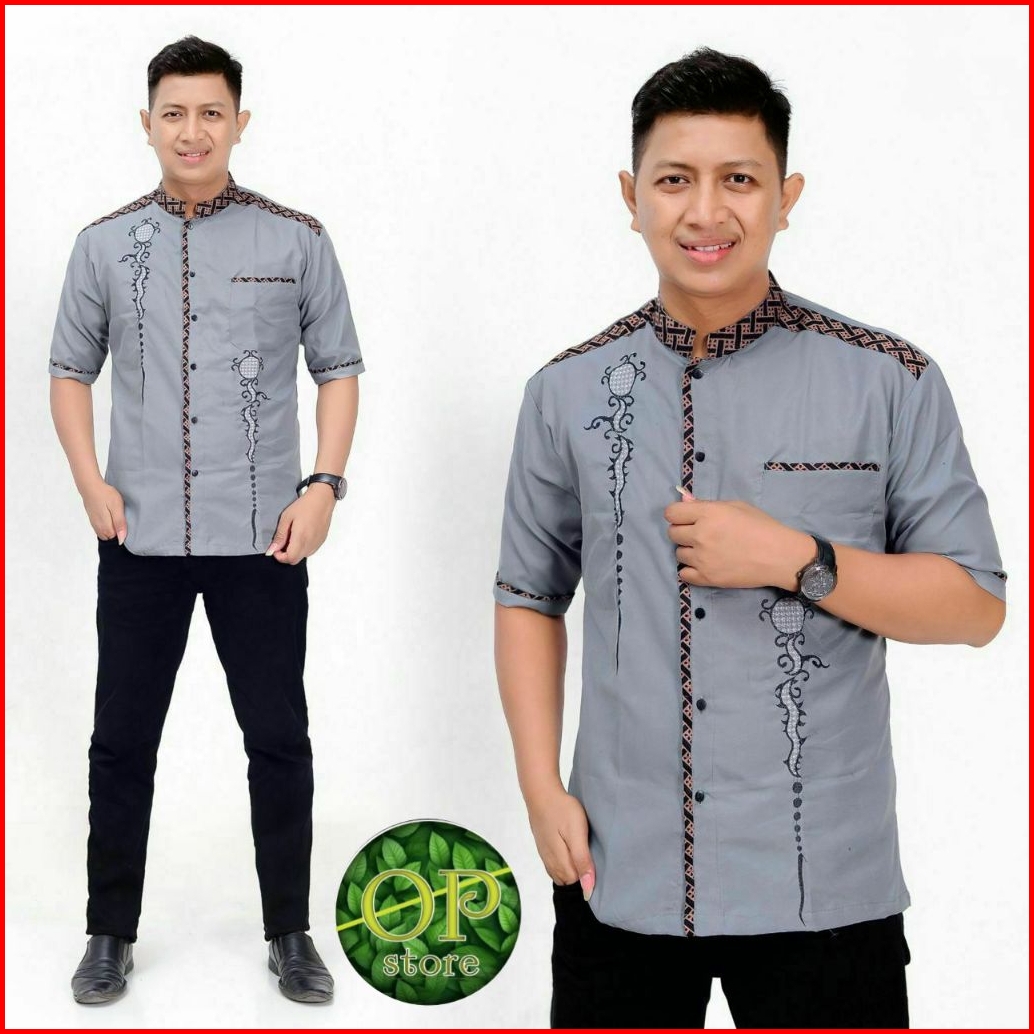 Kemeja Koko Bordir Pria Lengan Pendek Katun Adem Baju Muslim Pria Formal Casual