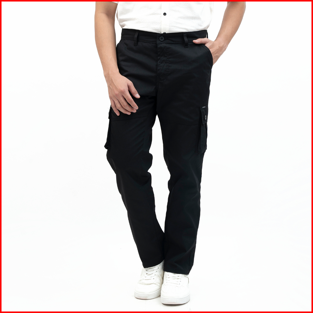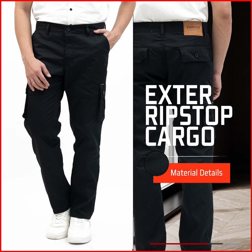 Carnos Exter Celana Cargo Panjang Pria Reguler Ripstop Hitam