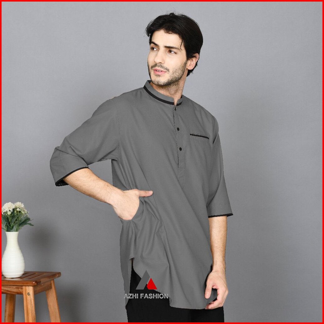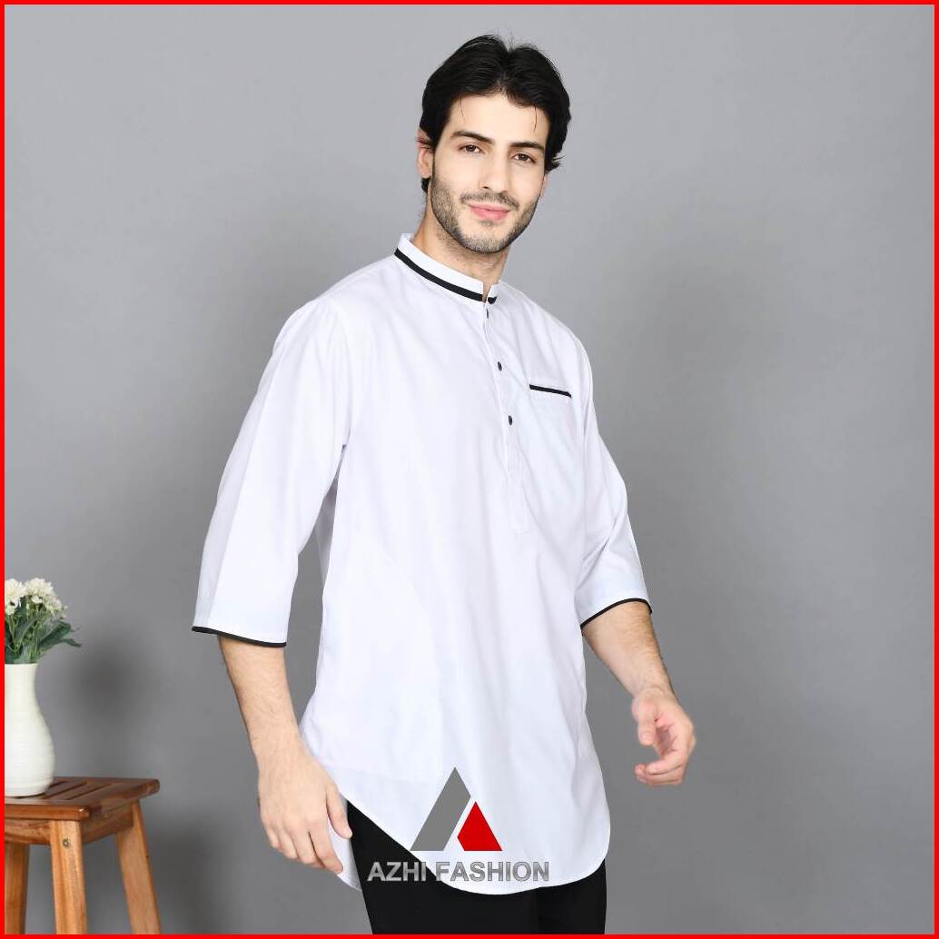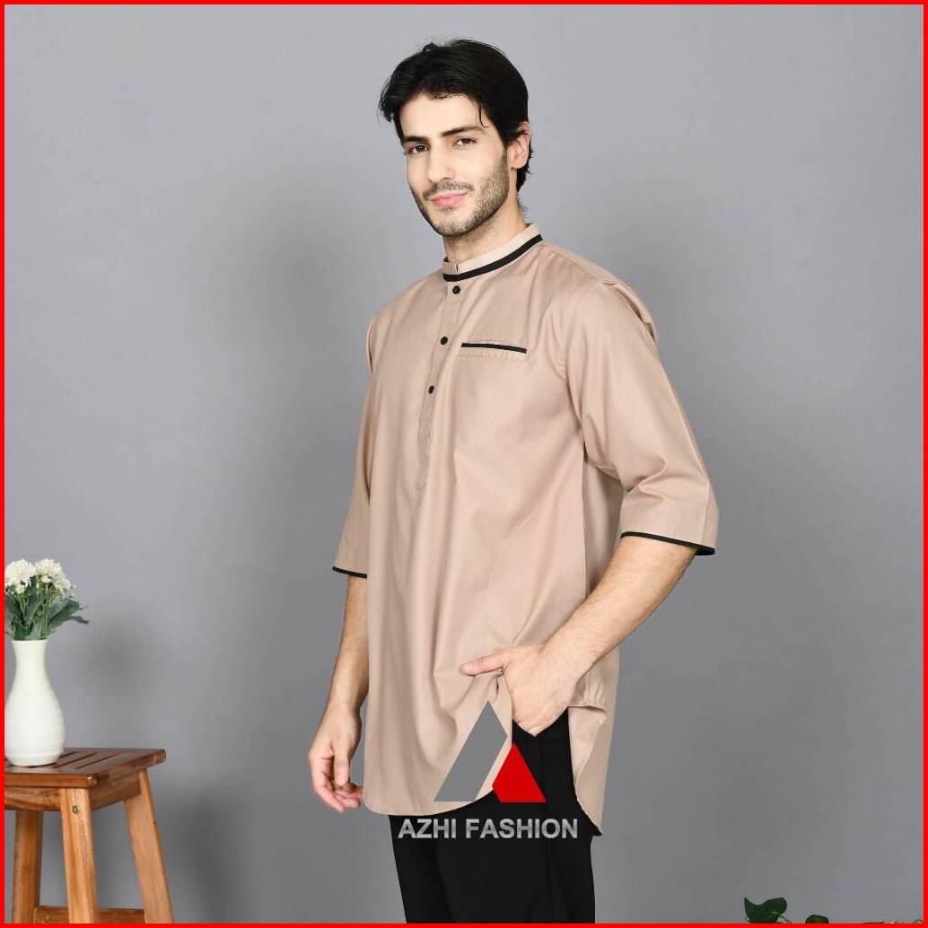 Azhi Baju Koko Kurta Pakiistan Pria Dewasa Lengan 3 4 Lis Kerah Katun Toyobo Fodu S - 4xl Terbaru