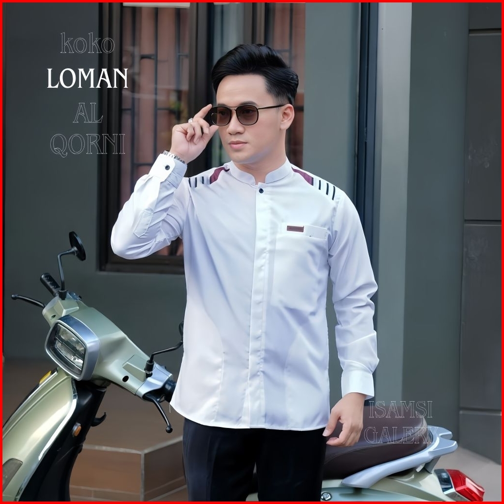Baju Koko Pria Kemeja Koko Lengan Panjang Al Qorni Motif Loman