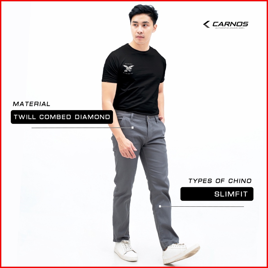 Carnos Slive Celana Chino Panjang Pria Slimfit Abu Muda