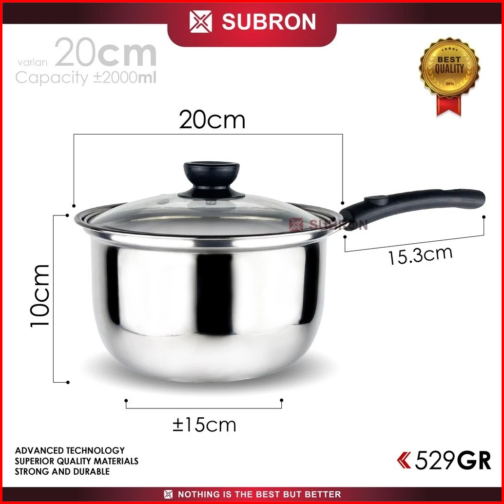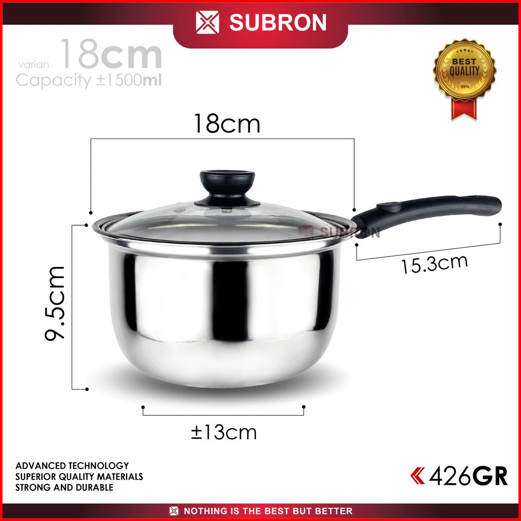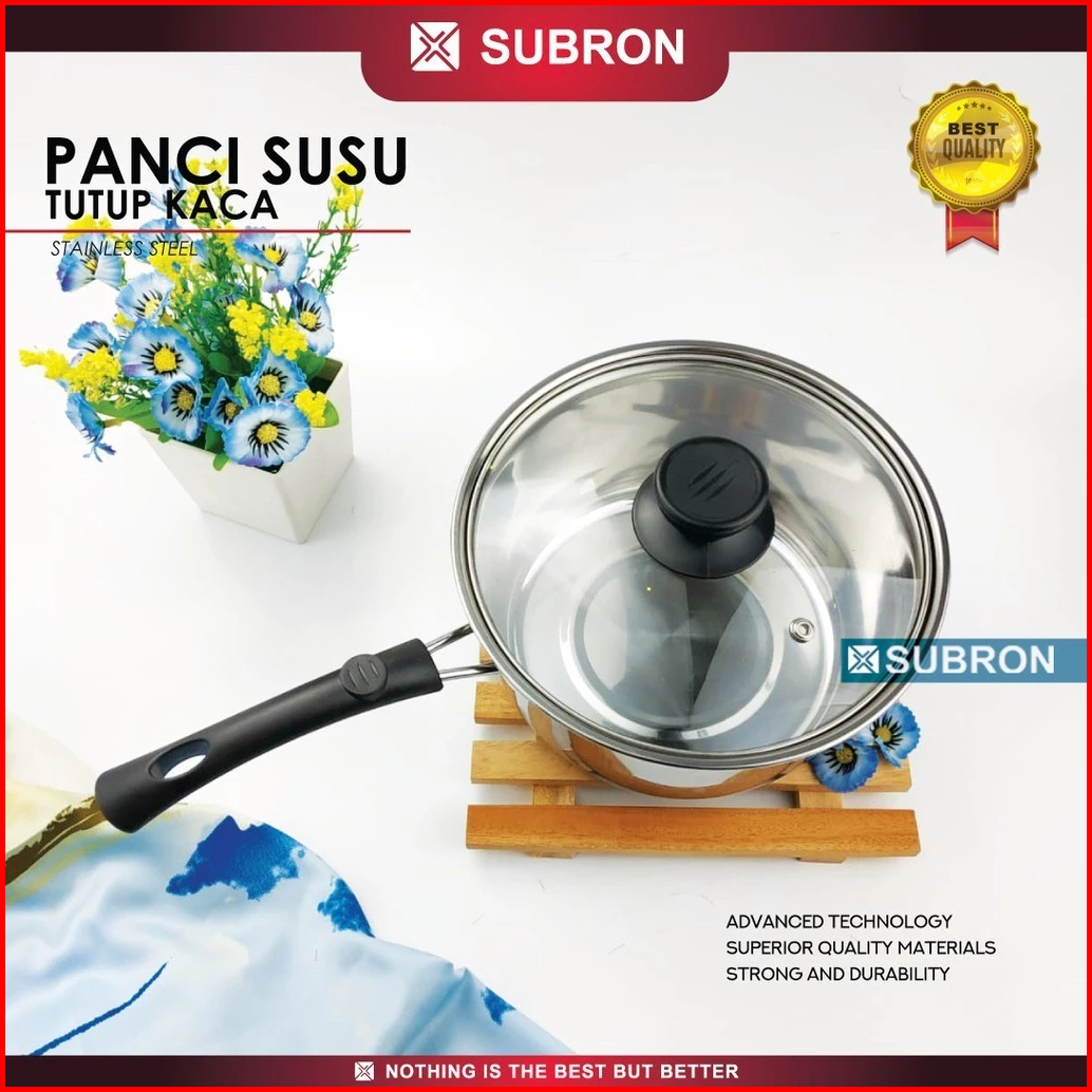 Subron Panci Susu Milk Pot Mpasi 18cm 20cm Tutup Kaca Stainless Steel Murah Panci Stainless Steel