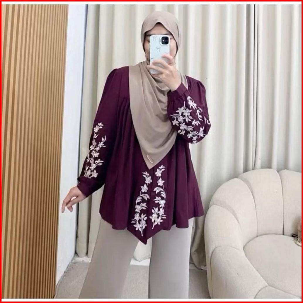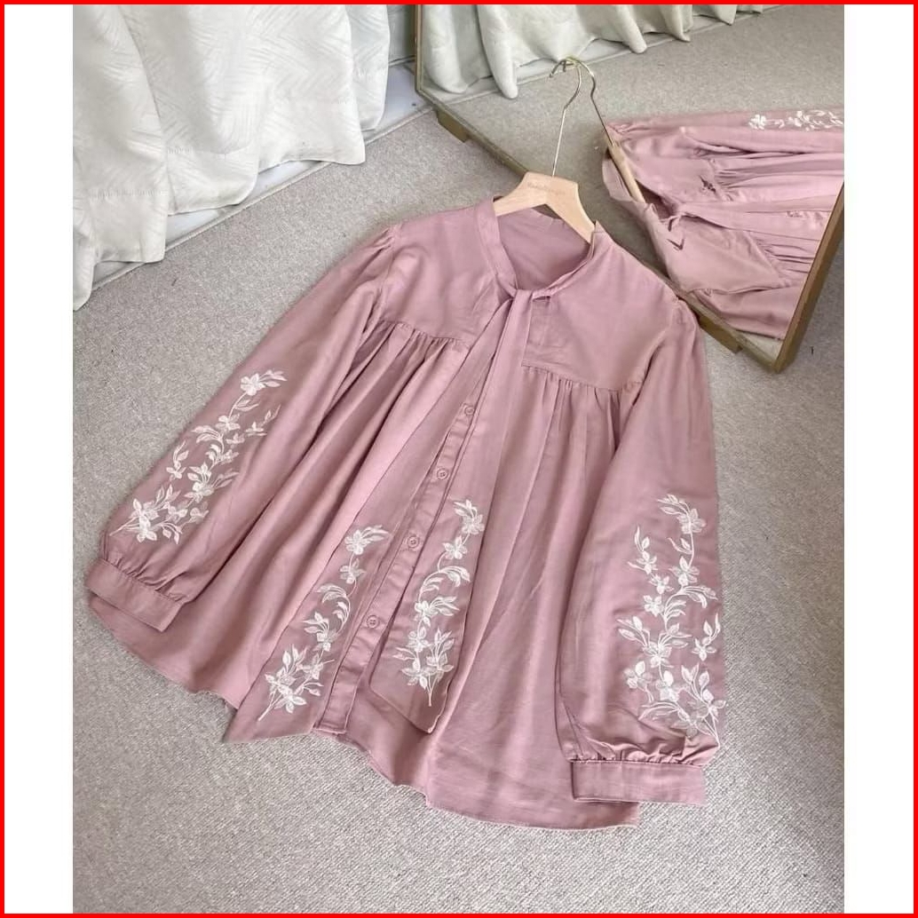 Devina Shirt Kemeja Bordir Wanita Bahan Rayon Twill Premium Kemeja Bordir Wanita Terbaru