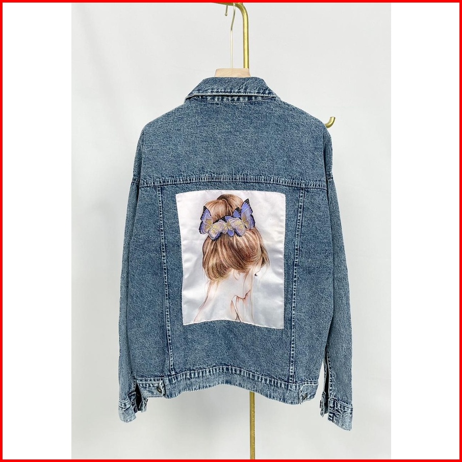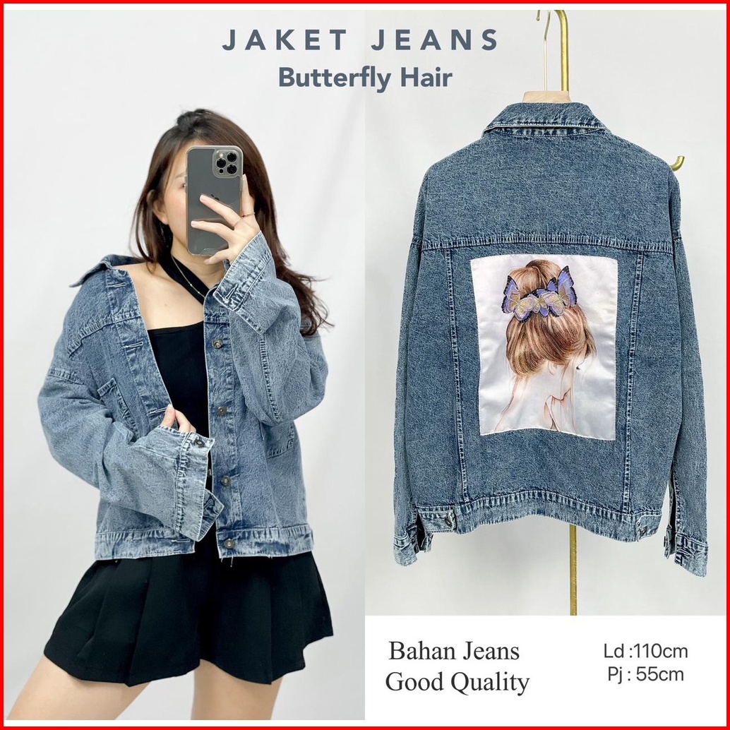 Jaket Jeans Wanita Kekinian Kantong Depan Butterfly Hair Hopylovy