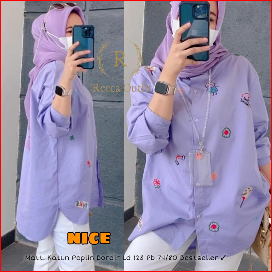 Kemeja Kasual Wanita Lengan Panjang Jumbo Motif Bordir Terbaru Pakaian Wanita Baju Atasan Blouse Katun Poplin Bordir Jum