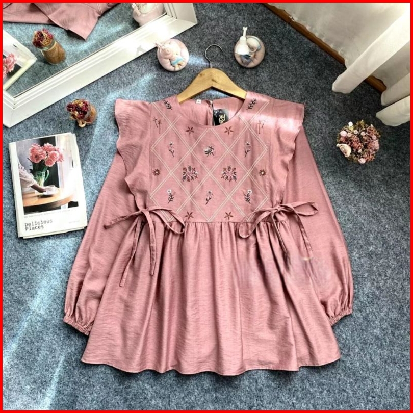 Atasan Wanita Blouse Bordir Polo Linen Terbaru Baju Atasan Kerja Wanita Ukuran S M L Xl Xxl Xxxl 5xl Mao Mao Blouse