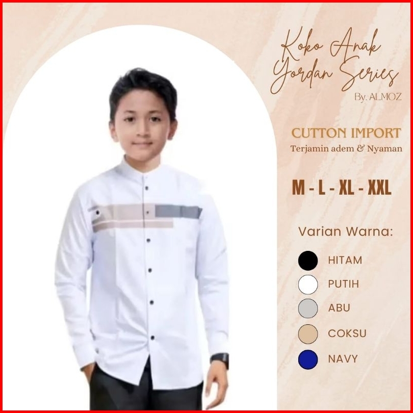 Baju Koko Anak Laki Laki Lengan Panjang Model Yordan Koko Ngaji Usia 512 Tahun Adem