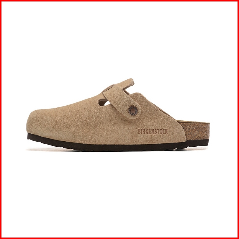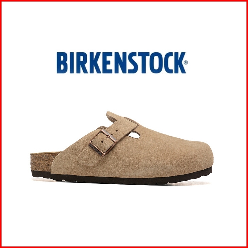 Birkenstock Boston Taupe Original Sandal Slop Suede Leather Soft Footbed Clogs Pria Wanita Slippers