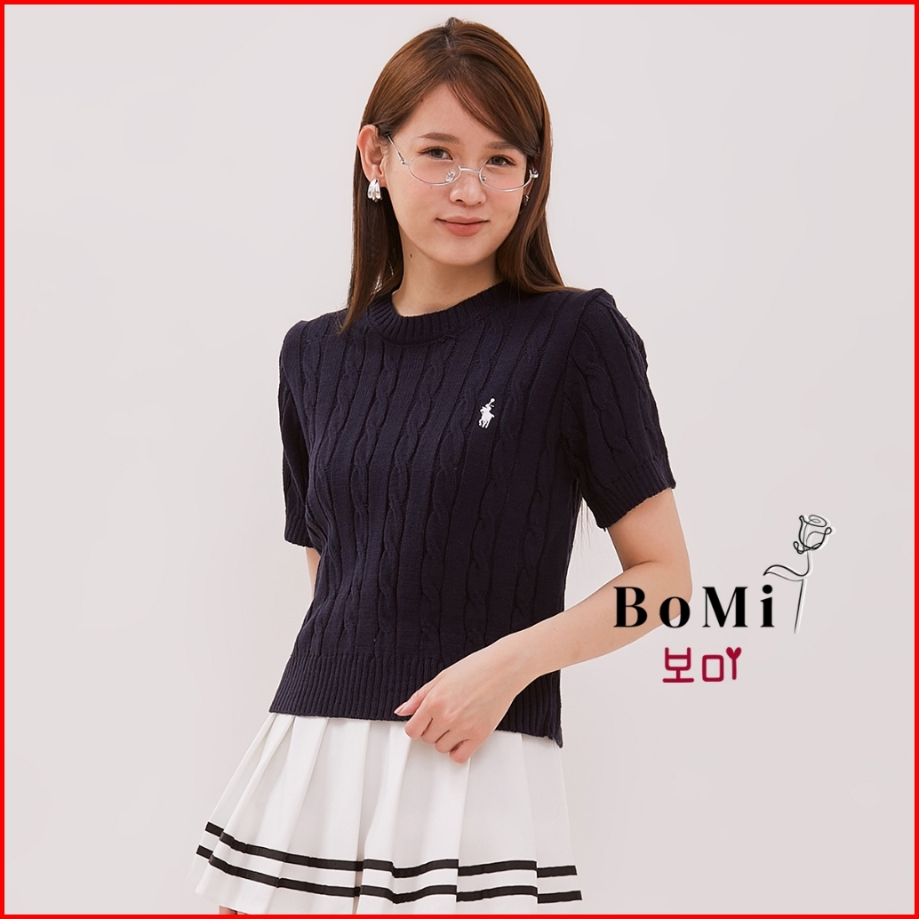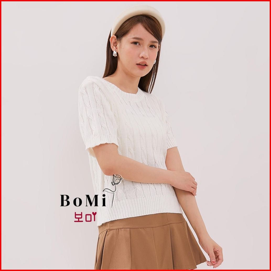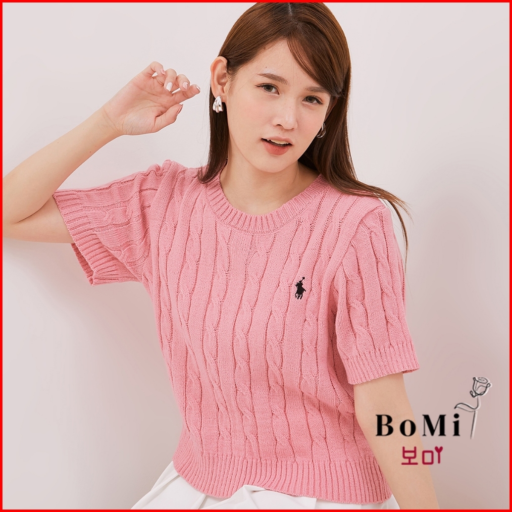 Bomi - Polo Short And Long Sleeve Top Atasan Rajut Kepang Polo Korea Wanita Lengan Panjang Dan Pendek Polos Kerah O Neck
