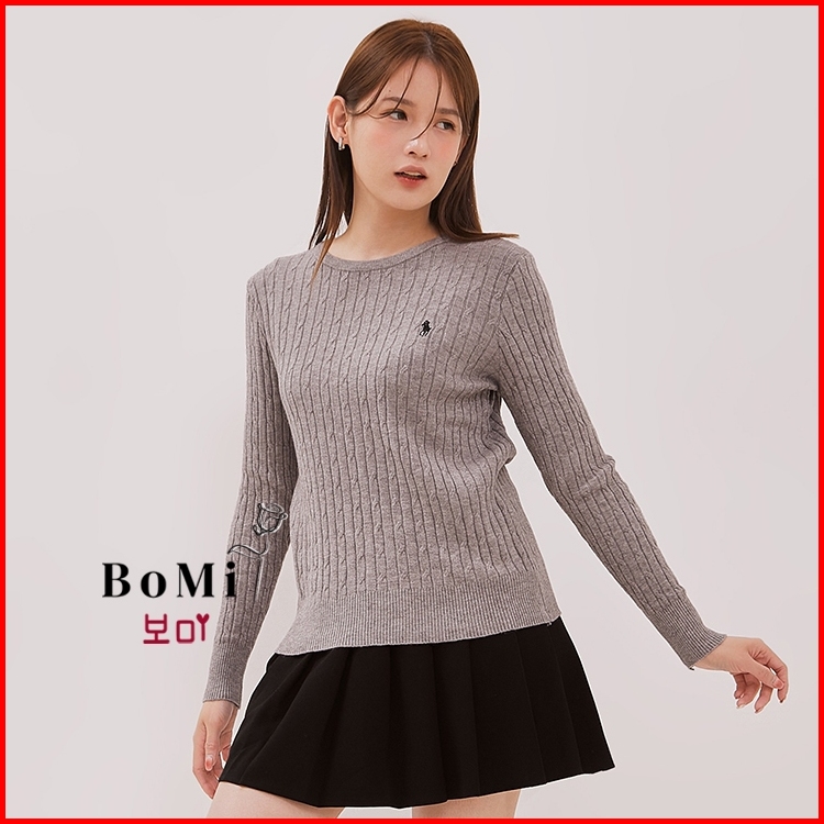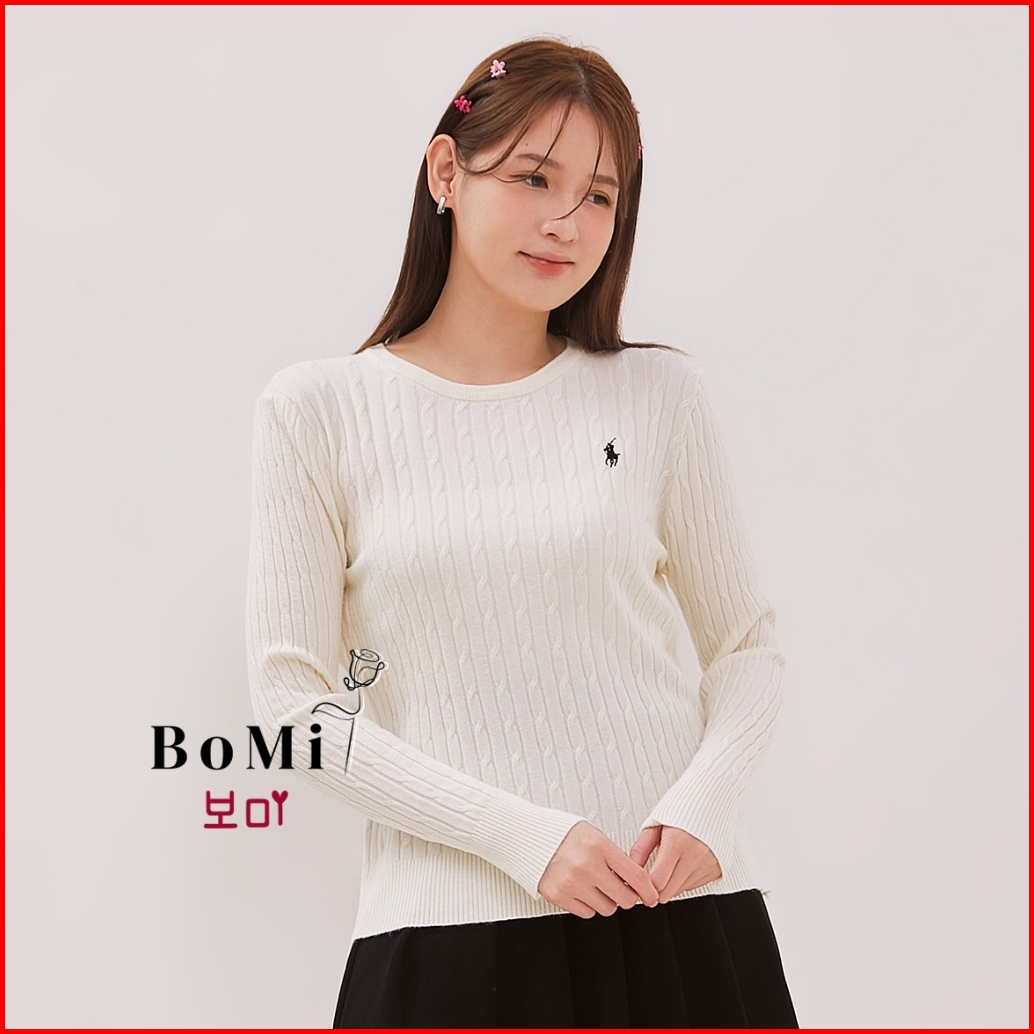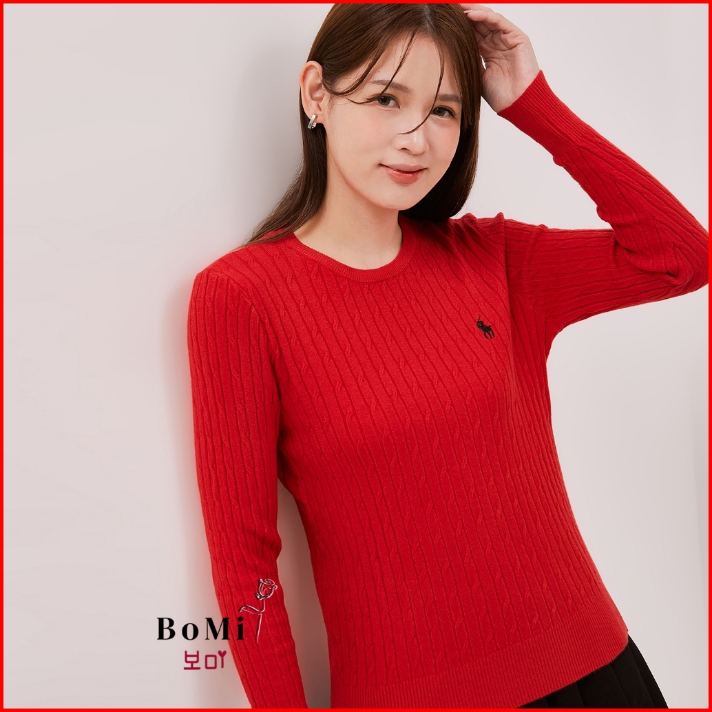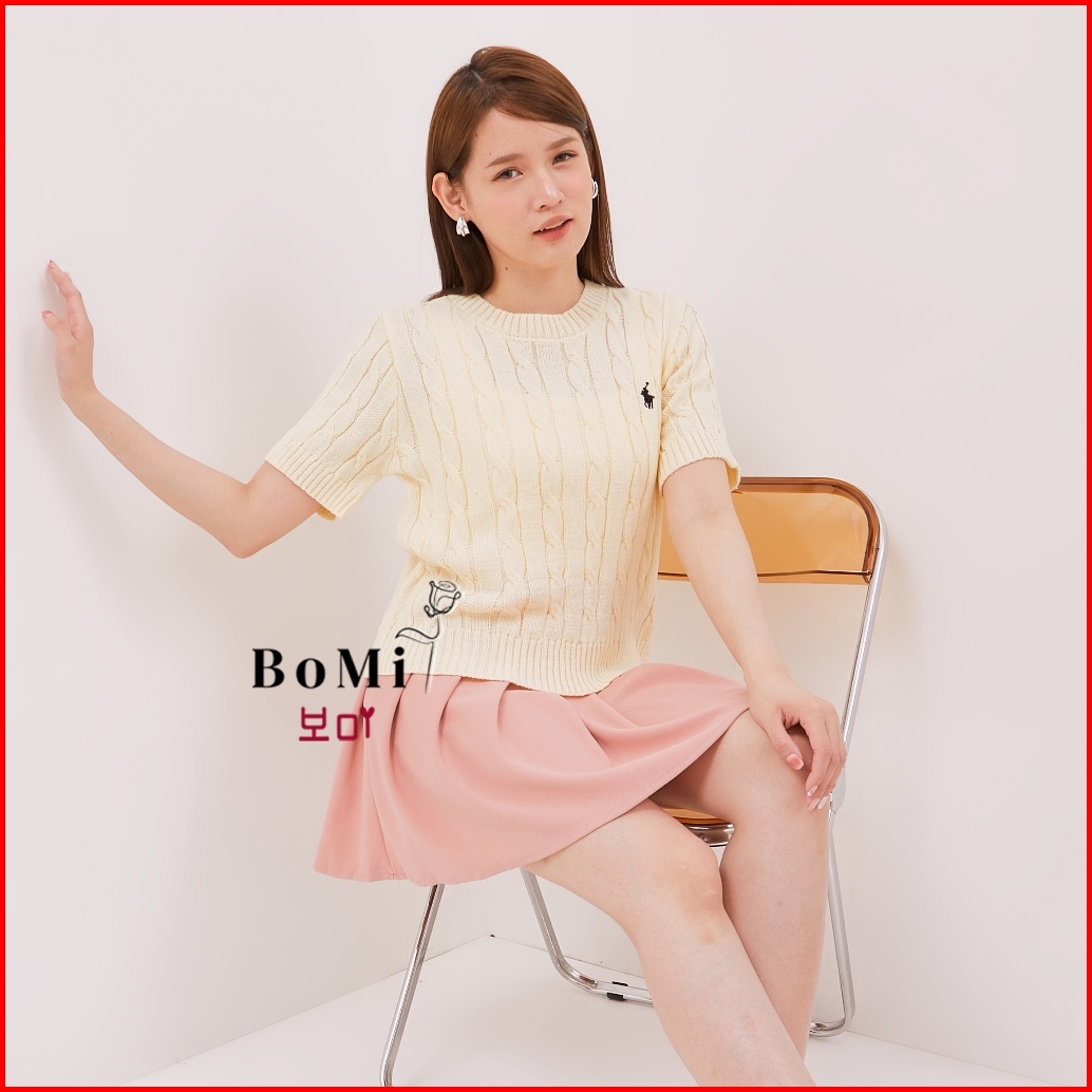 Bomi - Polo Short And Long Sleeve Top Atasan Rajut Kepang Polo Korea Wanita Lengan Panjang Dan Pendek Polos Kerah O Neck