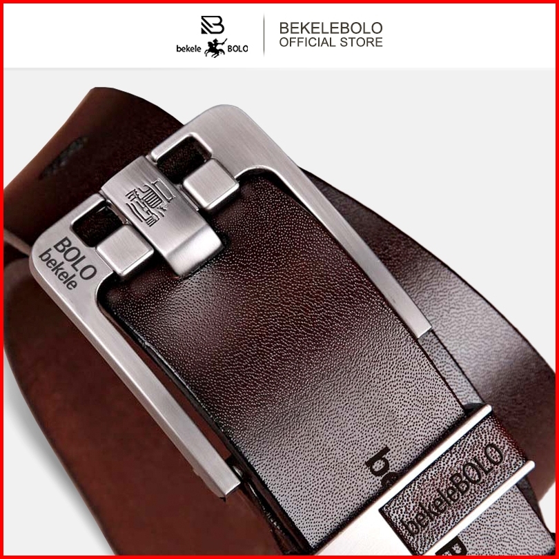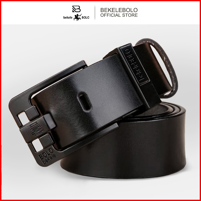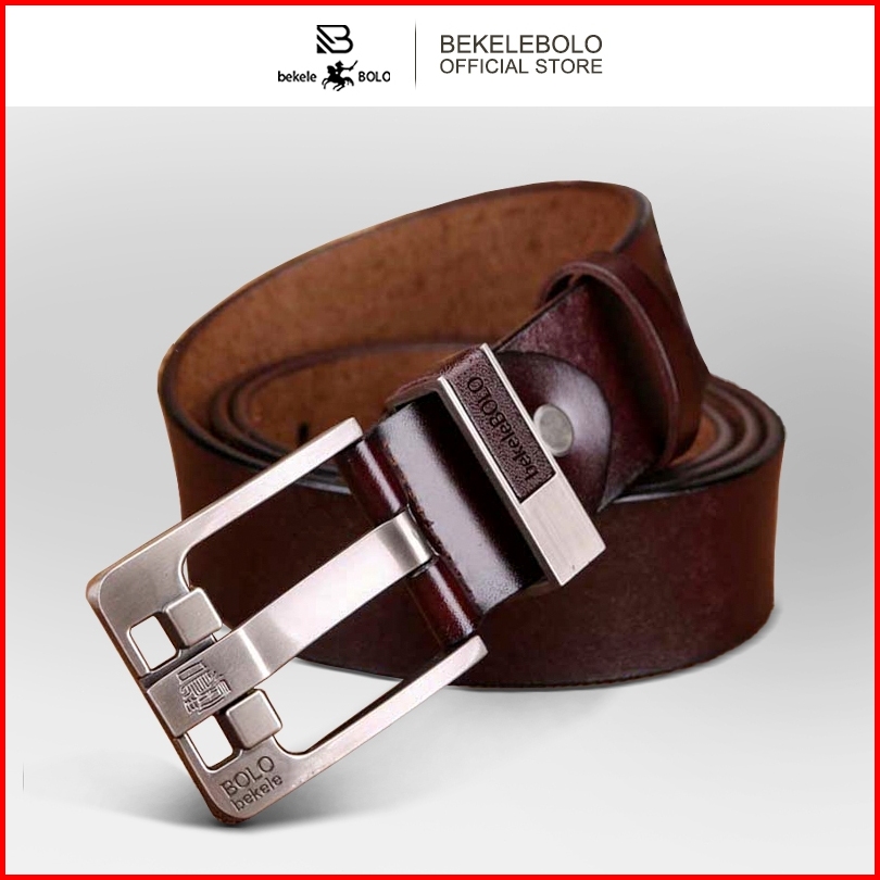 Bekelebolo 007 Ikat Pinggang Pria Kulit Sapi 2 Lapisan Gesper Gaya Kancing Pin Klasik