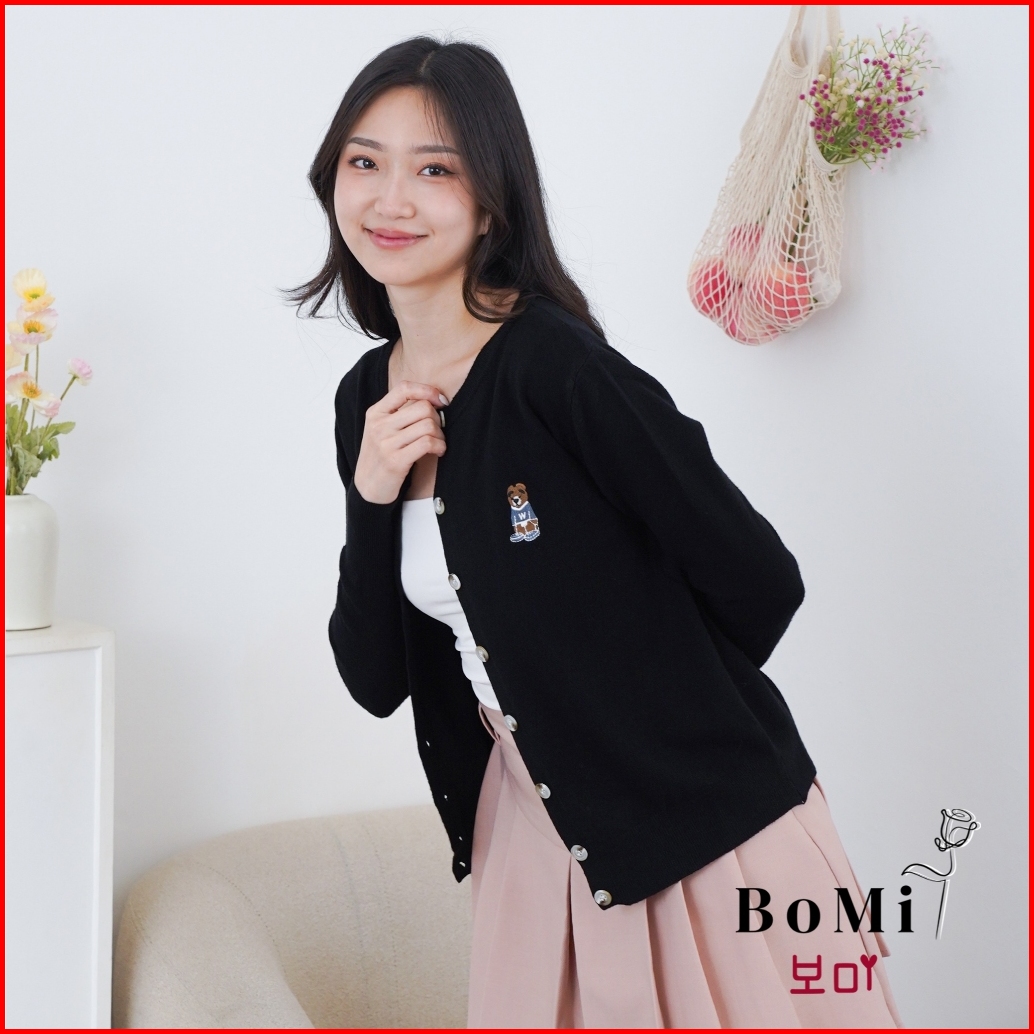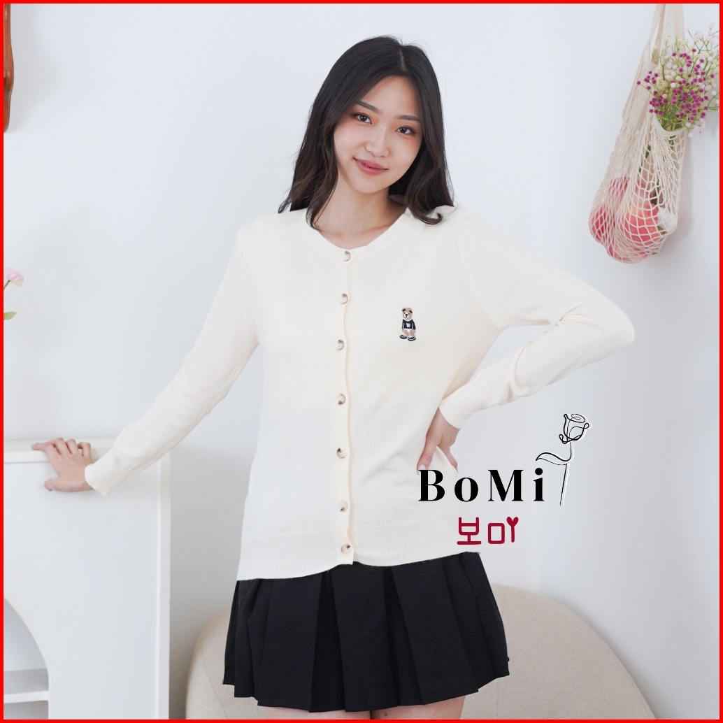 Bomi - Zora Top Cardigan Rajut Knit Outer Inner Top Knitwear Beruang Bear Cute Murah Bahan Halus Dan Lembut Premium
