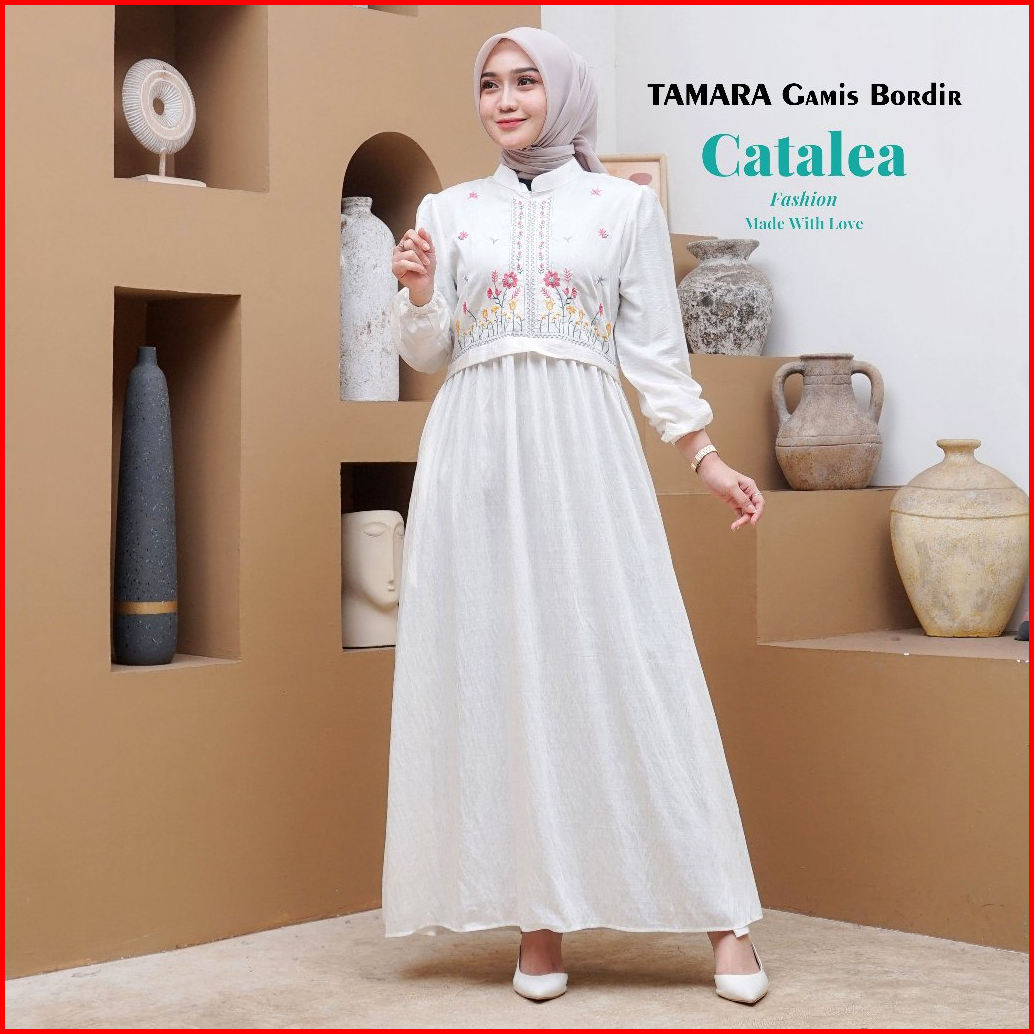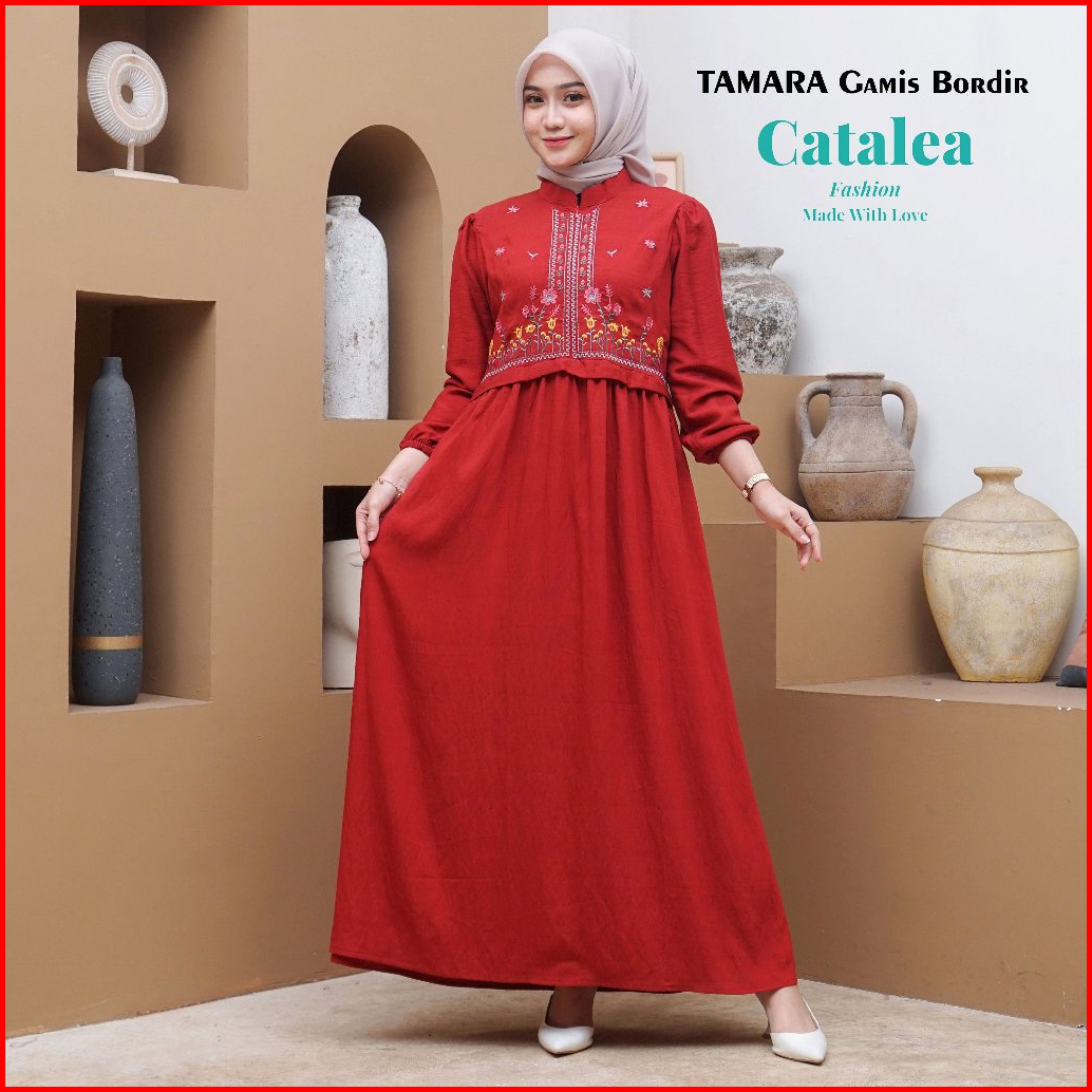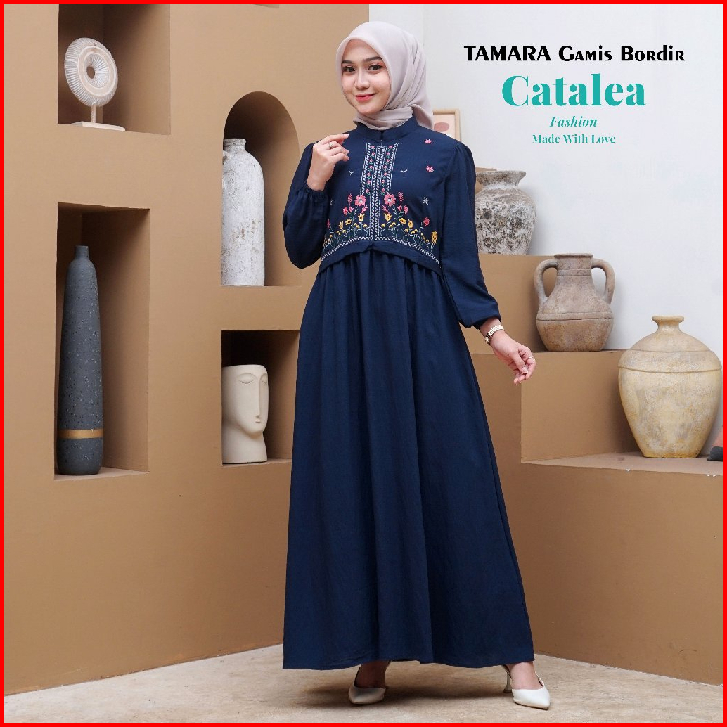 Tamara Gamis Bordir Kombinasi Empat Warna Polo Linen Premium