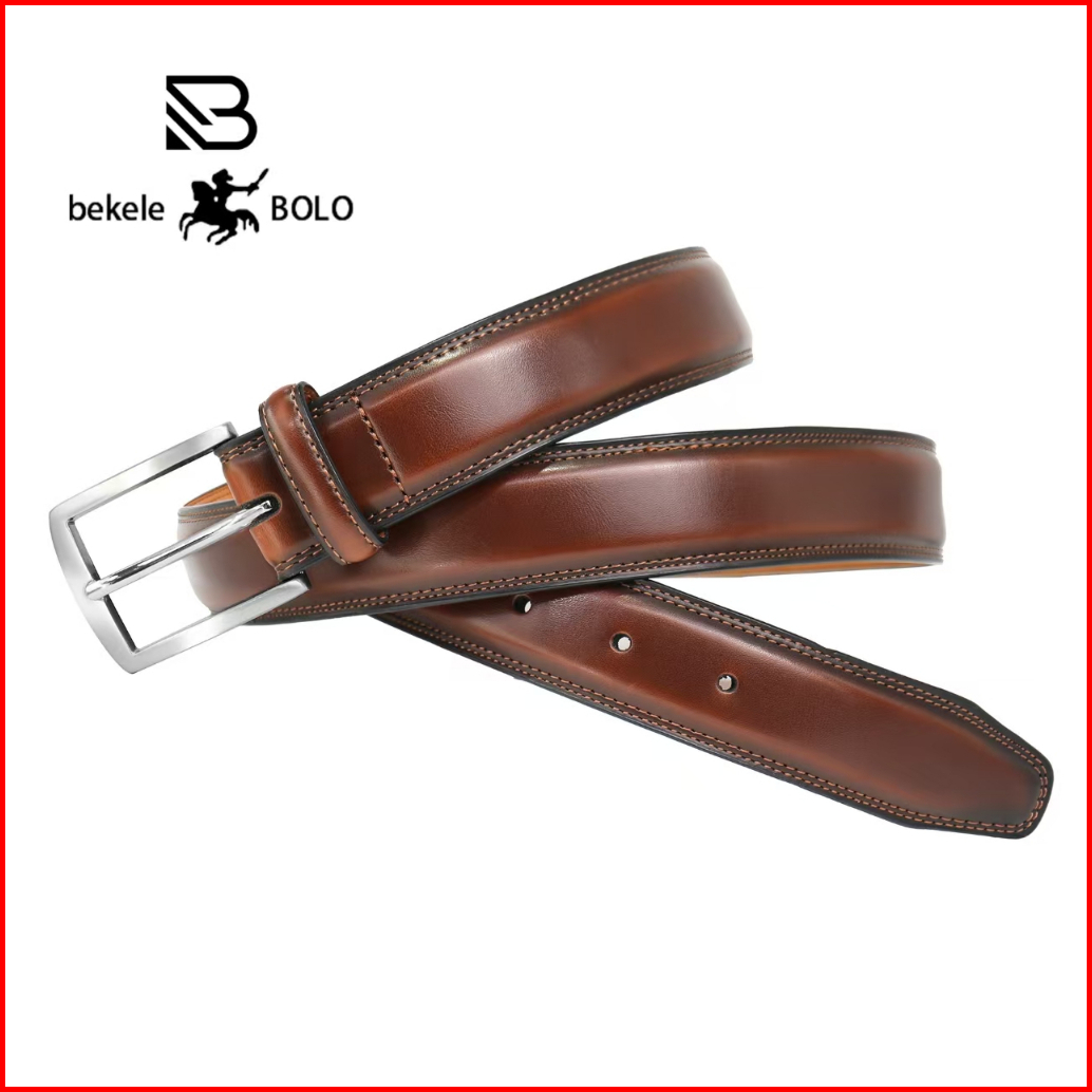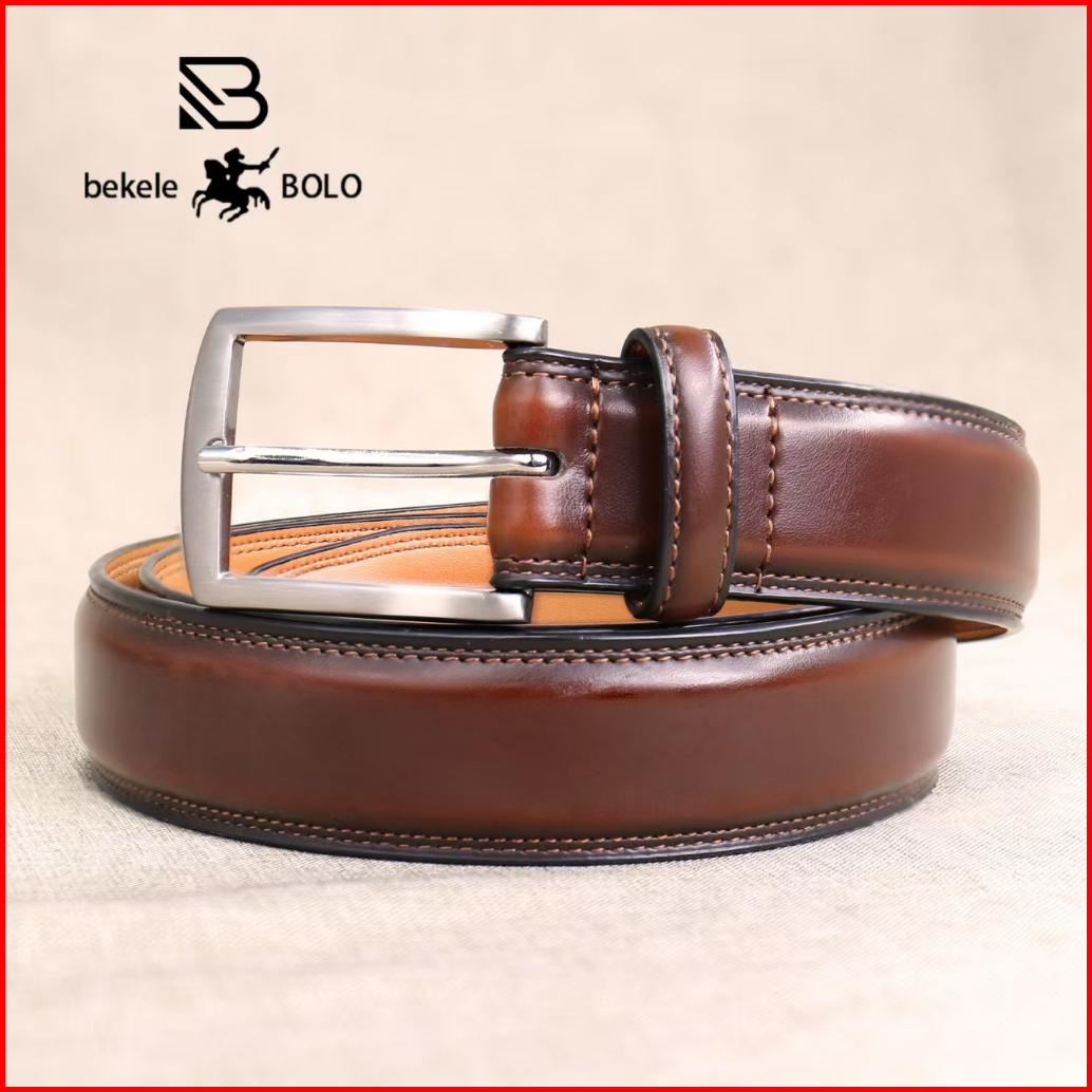 Bgs-589 Ikat Pinggang Pria Gaya Classic Sederhana Fashion Kulit 2 Lapisan Sabuk Jumbo 130cm Pria