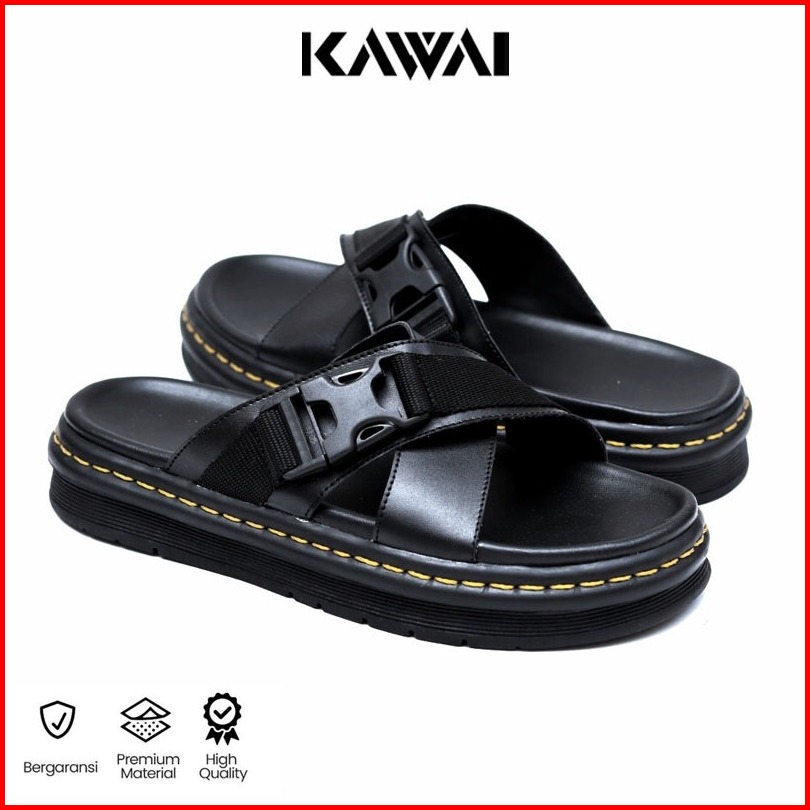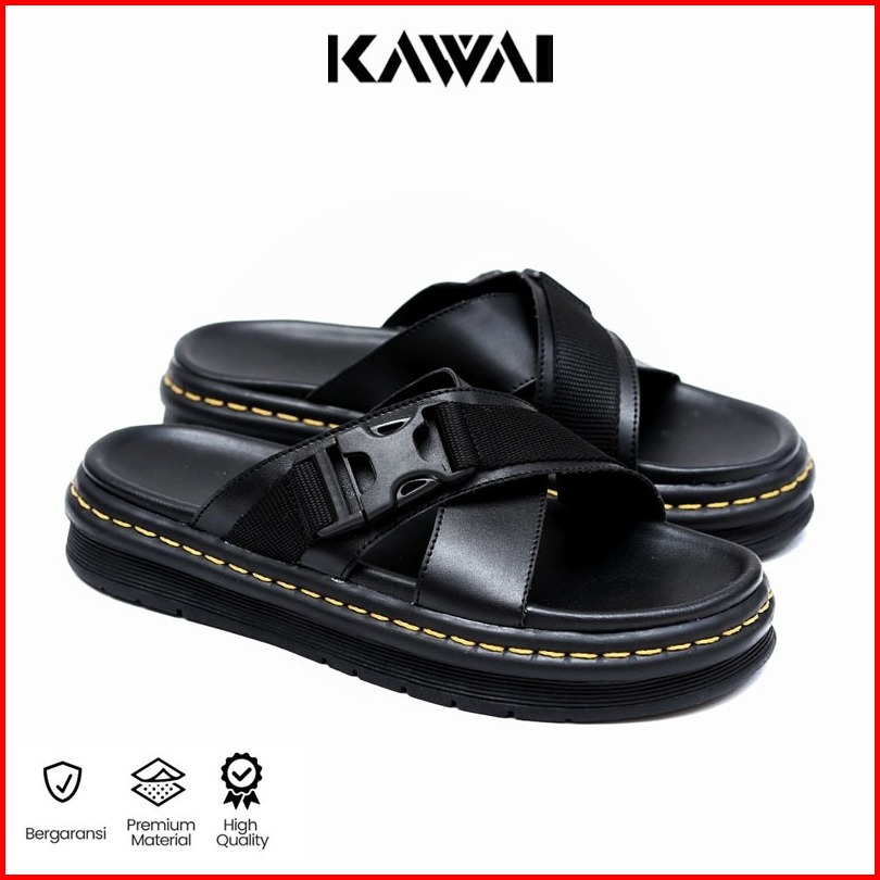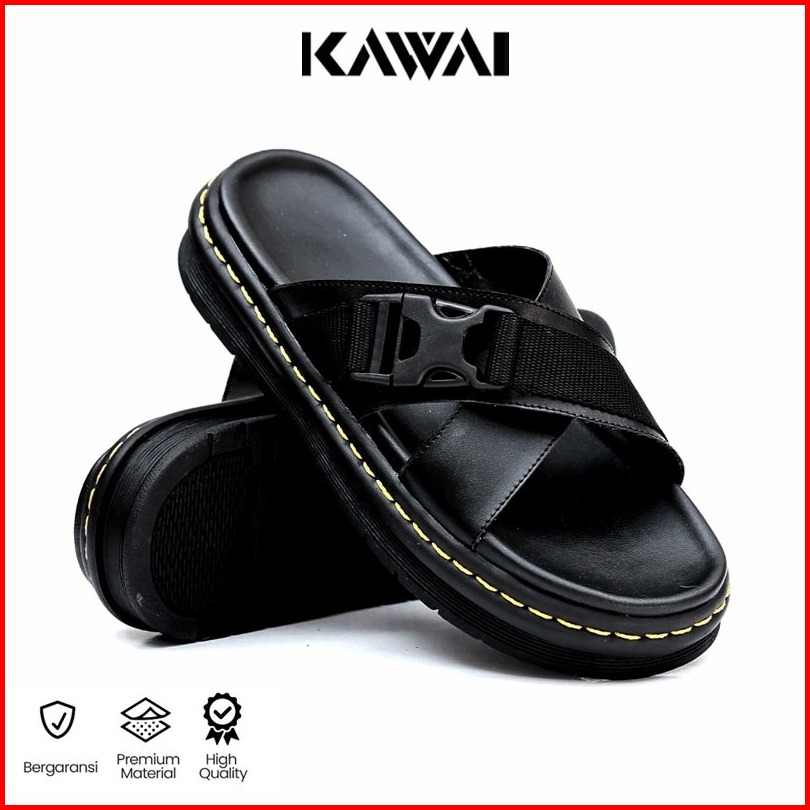 Sandal Slide Pria Hitam Sendal Pria Casual Kekinian Empuk Santai