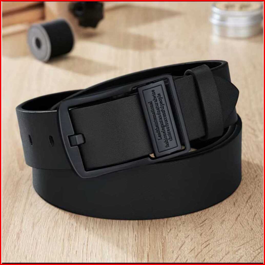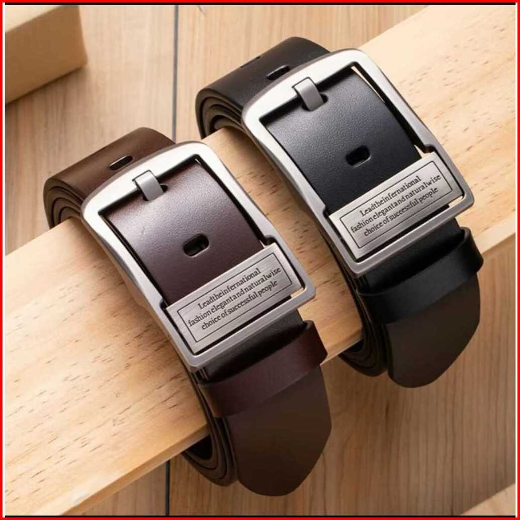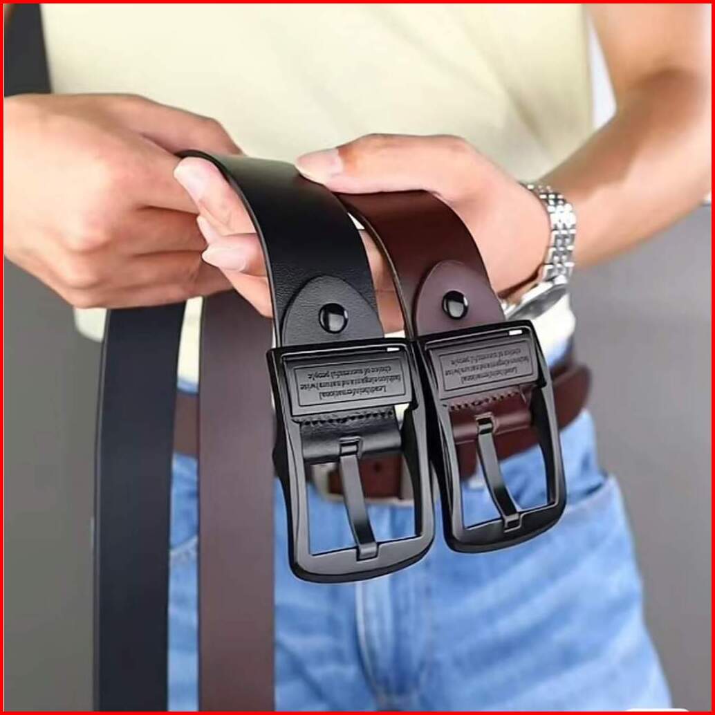 Sabuk Kulit Sapi Asli Sapi 2 Lapisan Korea Fashion Gaya Kancing Pin Klasik Ikat Pinggang Pria Belt