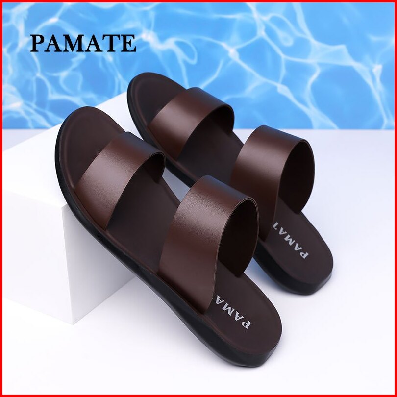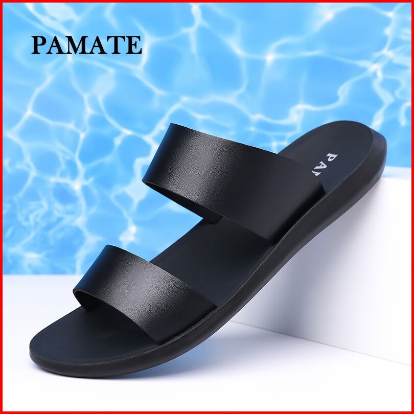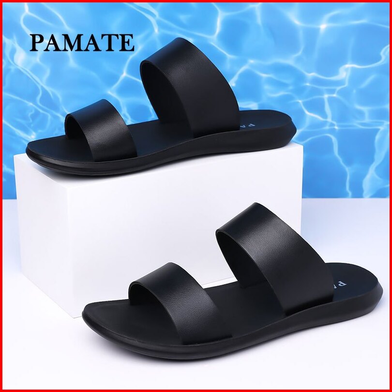 Sandal Pria Kulit Hitam Selop Slip On Casual - Anti Selip Nyaman