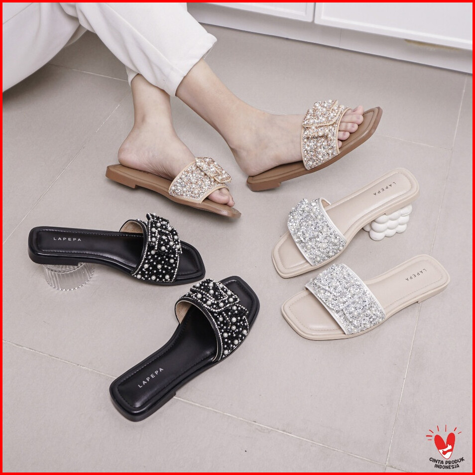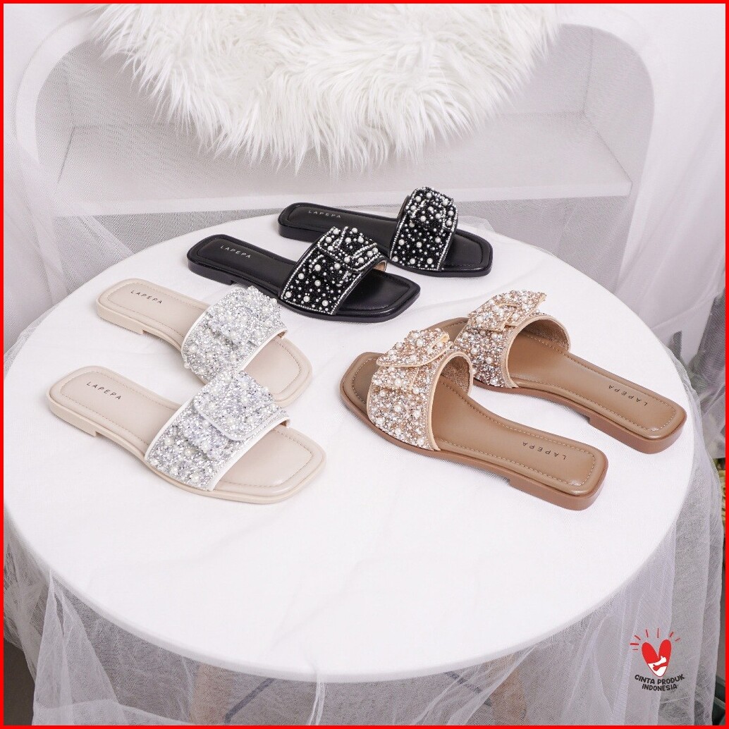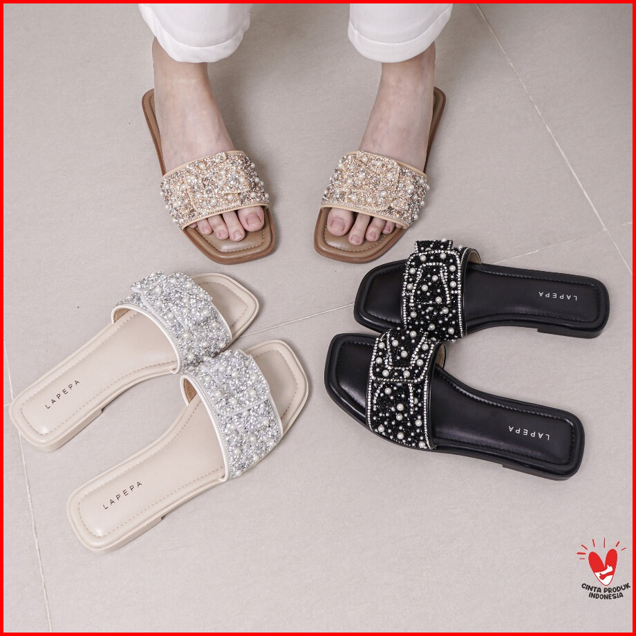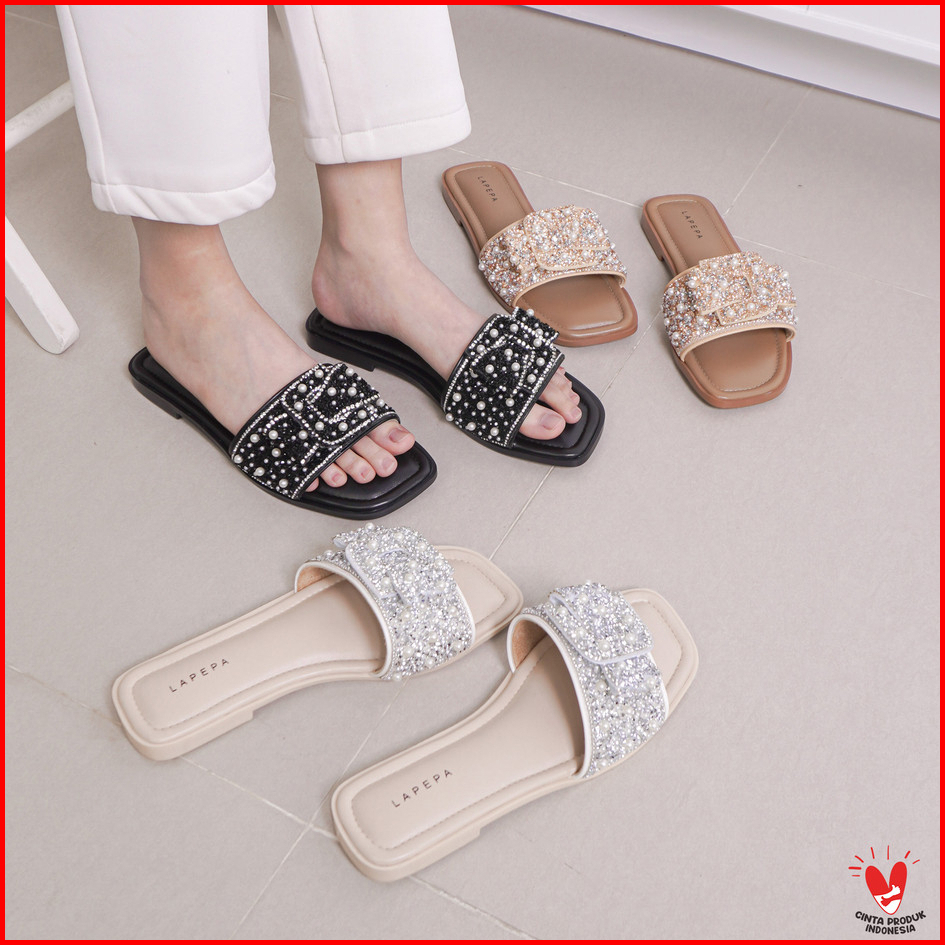 Lapepa Yuk - Nava Sandal Wanita Teplek Korea Casual Premium Size 36 - 41 Sendal Slop Empuk Flat Cewek Kasual Rumahan War