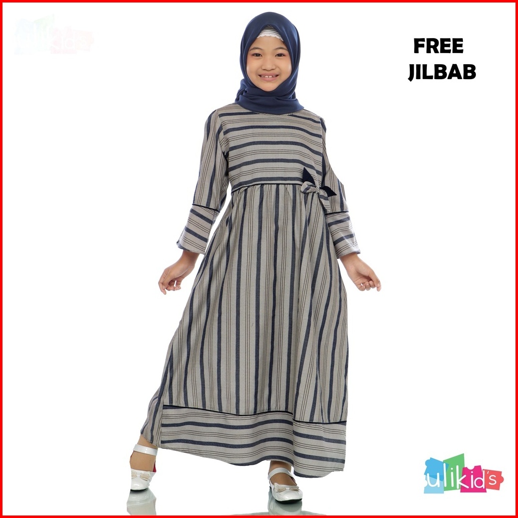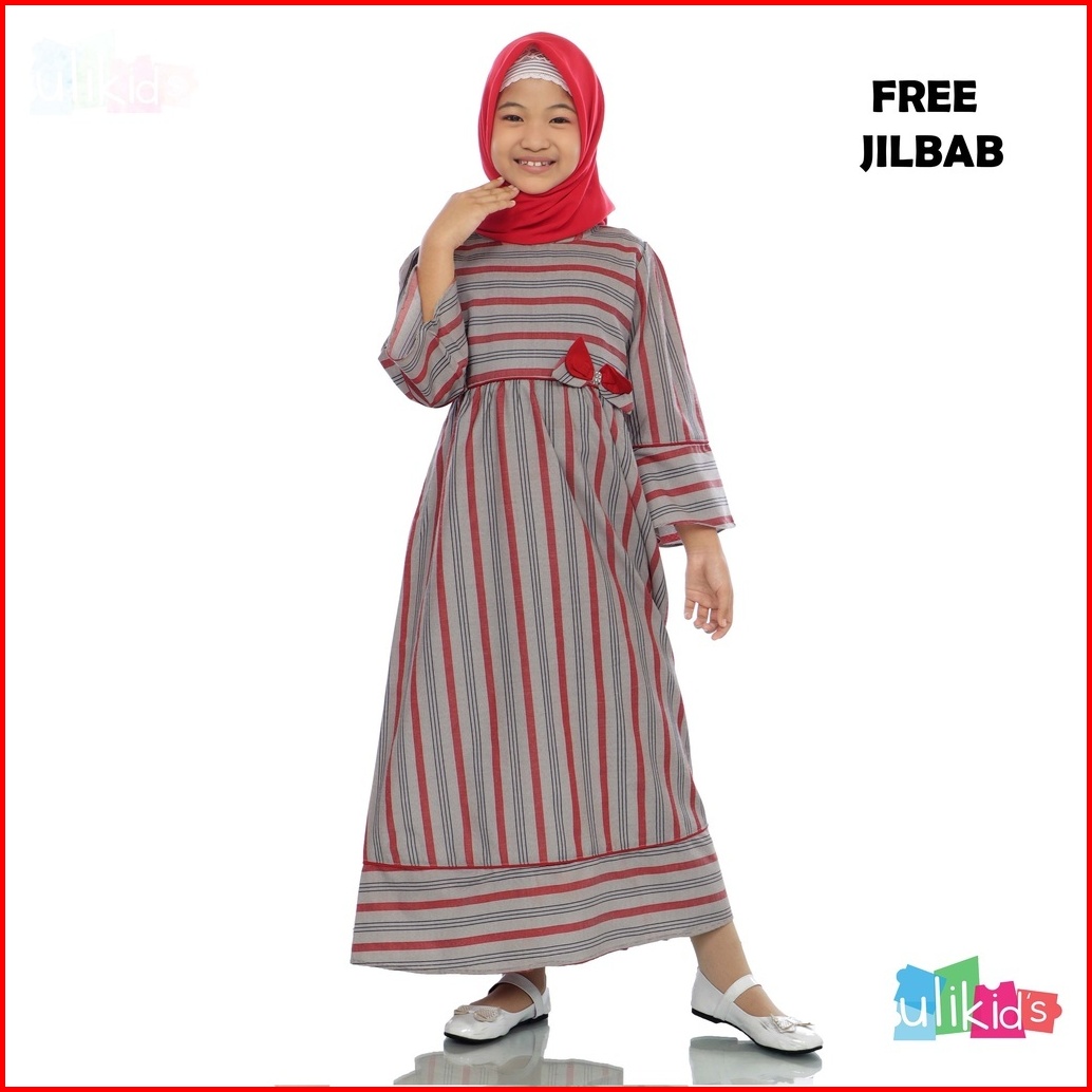 Ulikids Baju Anak Perempuan Gamis Anak Usia 3-5 Tahun Motif Garis Nusantara Bahan Katun Terlaris Lebaran 2024