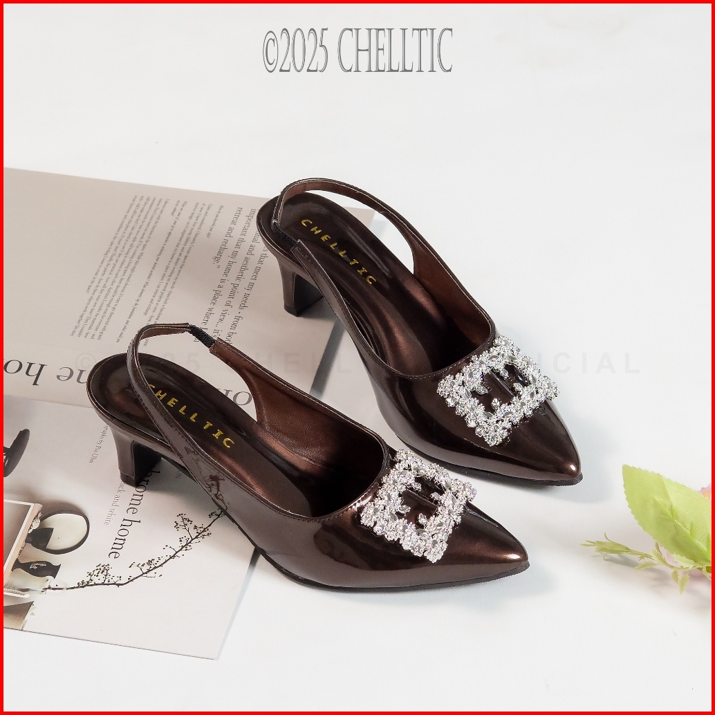Chelltic - Heels Wanita 5cm Elegan Pointed Toe Slingback Manik-manik Blink Untuk Kerja Kondangan Dan Formal Sepatu Pesta