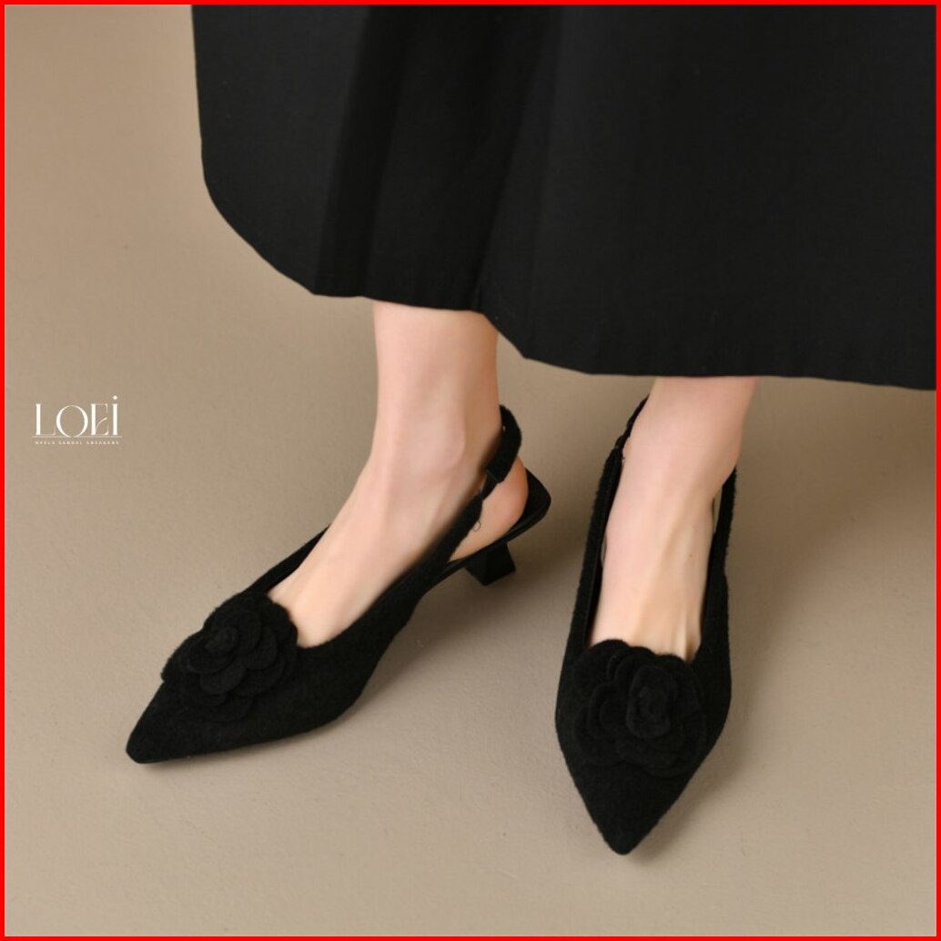 Loei Roseline Heels Floral Slingback Feminim Bunga Sepatu Hak Wanita Style Korea R22