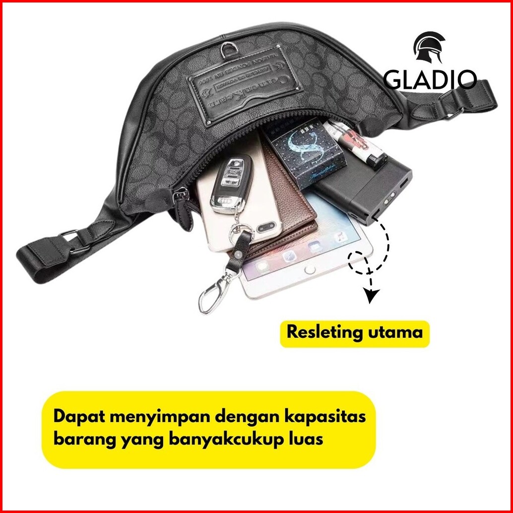 Gladio Tas Selempang Gld094b5 Sling Pria Bag Hitam Elegan Kulit Motif Multifungsi Premium Chadwick