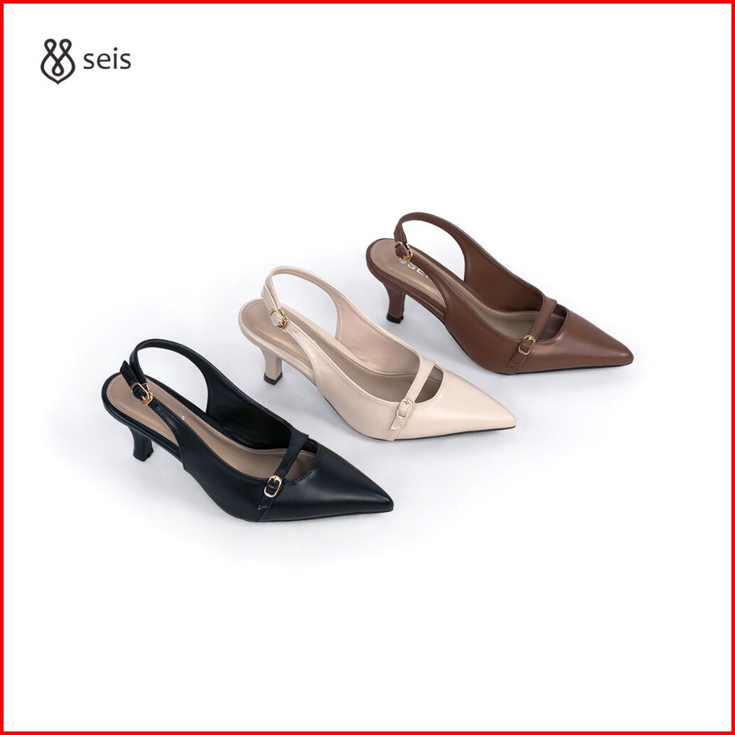 Seis Maurice Mules Heels Wanita Slingback Hak 7 Cm