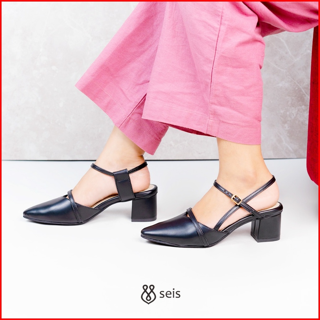 Seis Yura Mules Heels Wanita Slingback Hak 5 Cm