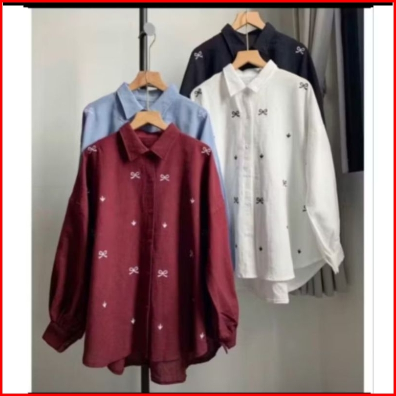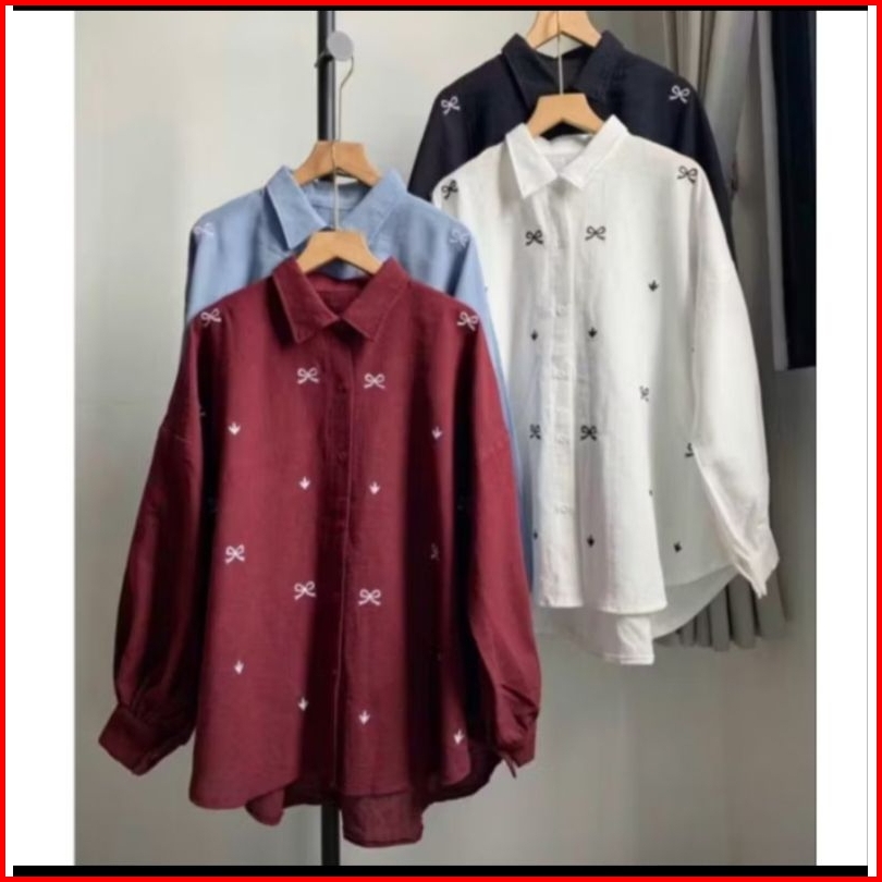 Terlaris Kemeja Pita Bordir Korean Crinkle Airflow Viral