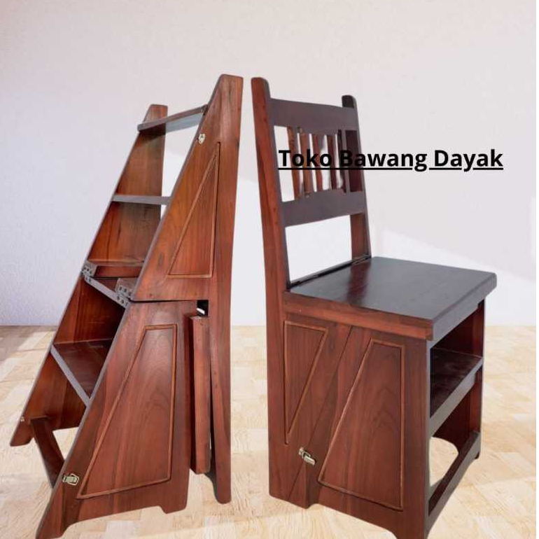 Kursi Tangga Lipat Anti Goyang Kayu Bangku Portable 2in1 4 Anak Tangga Dapur Konter Perpustakaan