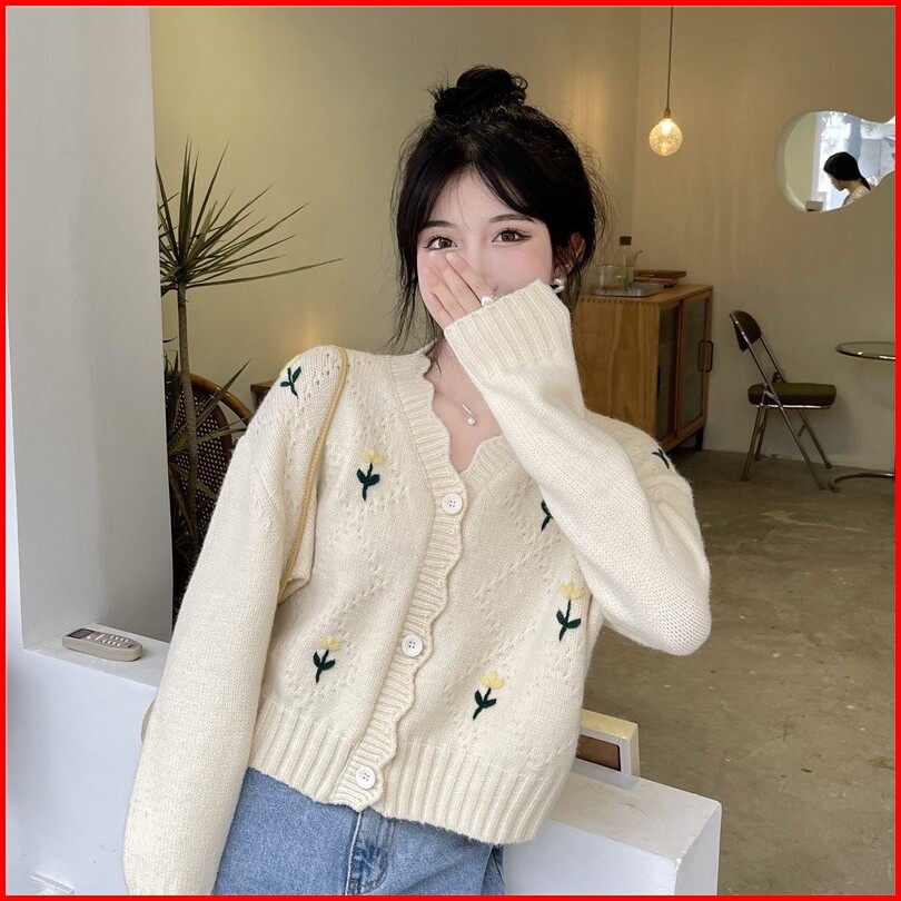 Pr Cardigan Crop Flower Premium Wanita Atasan Rajut Sweater Knitwear Outer