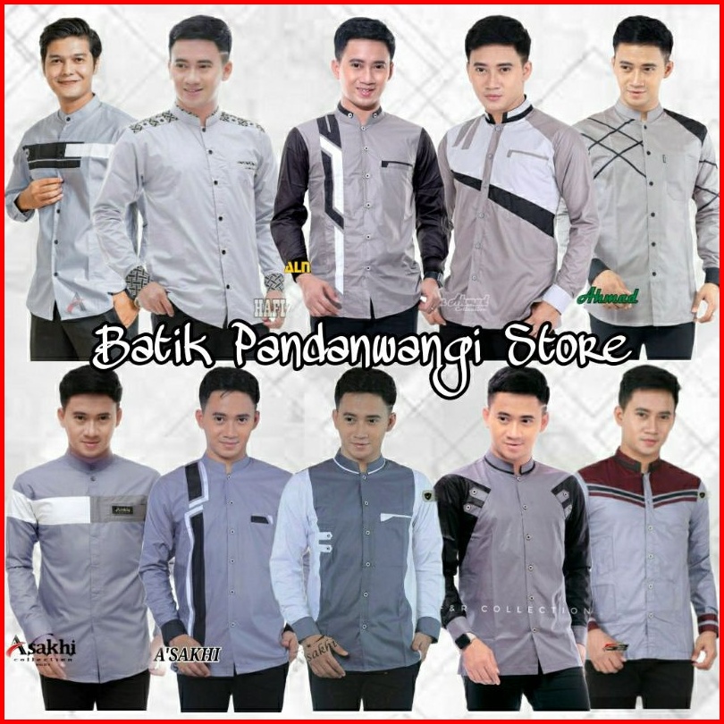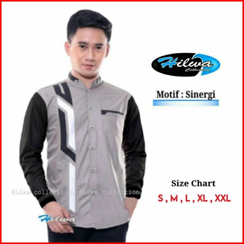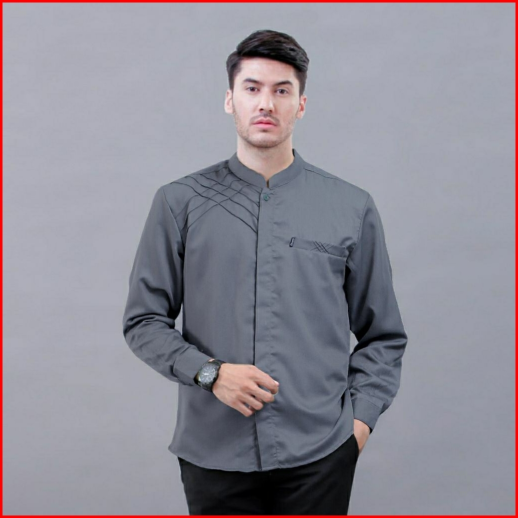 Baju Koko Muslim Dewasa Lengan Panjang Kemeja Koko Kombinasi Sragam Hadroh Azzahir Hilwa Asakhi Terbaru Abu