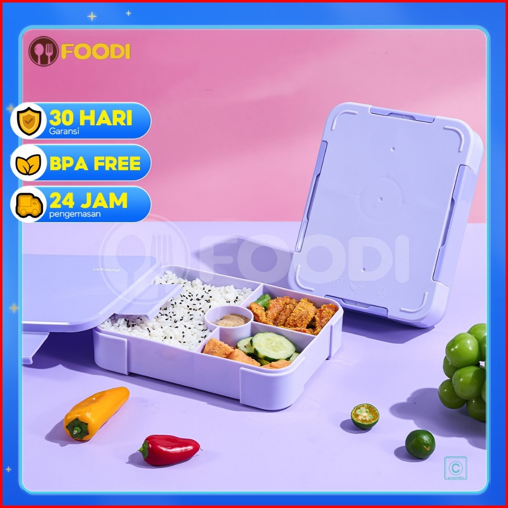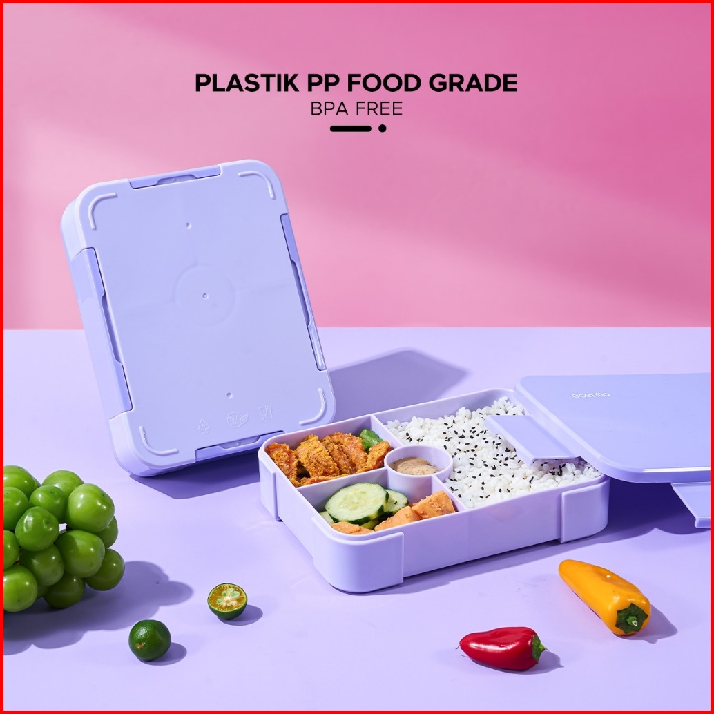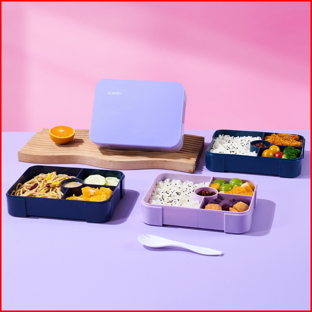 Ecentio Kotak Makan Plastik Lunch Box 3 Kompartemen Perlindungan Anti Bocor Desain Isolasi Tertutup Warna Ungu-biru 950m