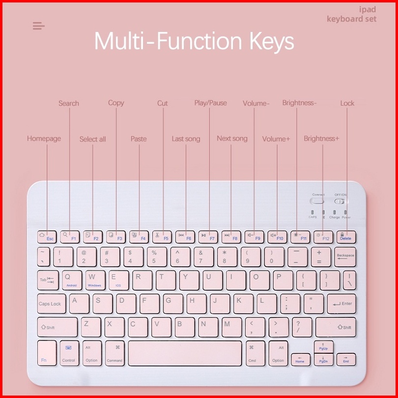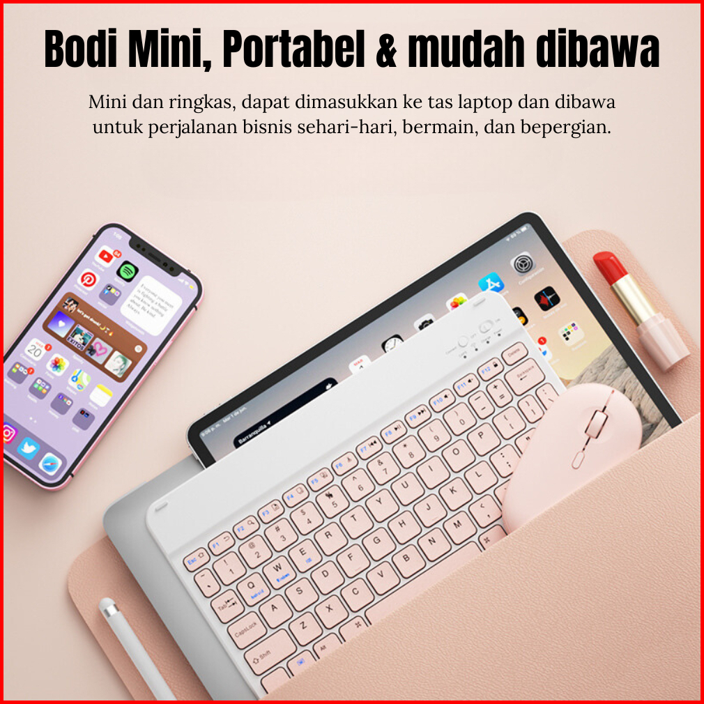 Keyboard Mouse Set Wireless Bluetooth 10 Inch Lightweight Portable Colorful For Laptop Pc Tab Phone