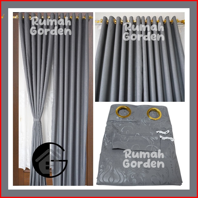 Tirai Pintu Dan Gorden Jendela Polos Embos Smokering 12 Lubang Korden Abu Tua