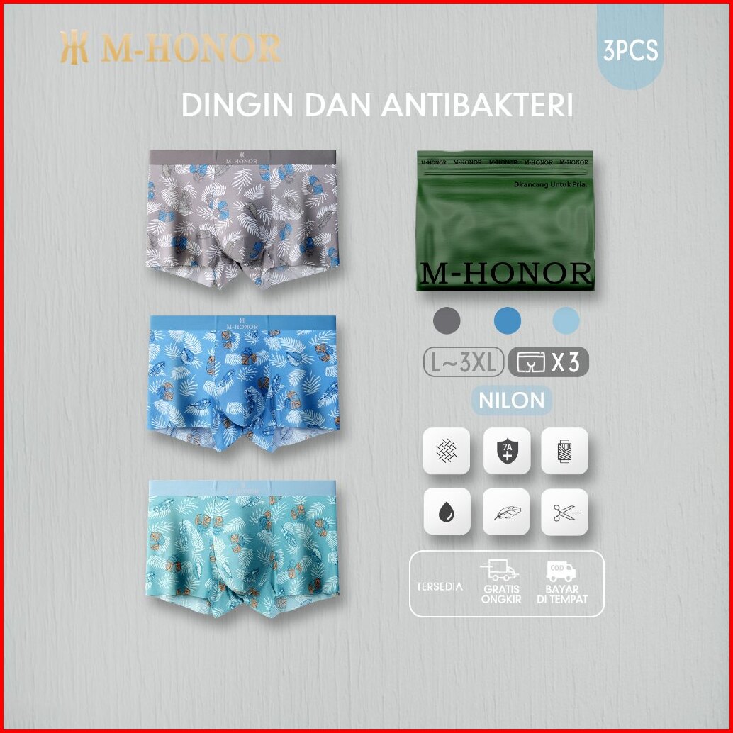 Isi 3pcs M-honor Celana Boxer Pria Cd Nilon N03