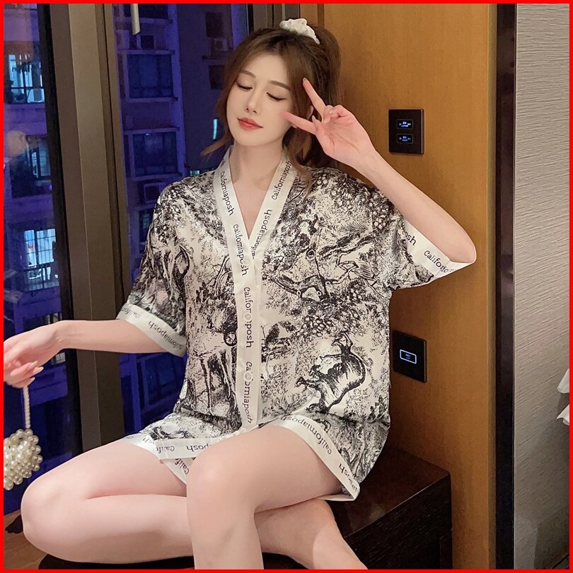Baju Tidur Wanita Jasmine Fashion Id - Piyama Set Pajamas Dewasa Bahan Satin Premium Motif Kancing