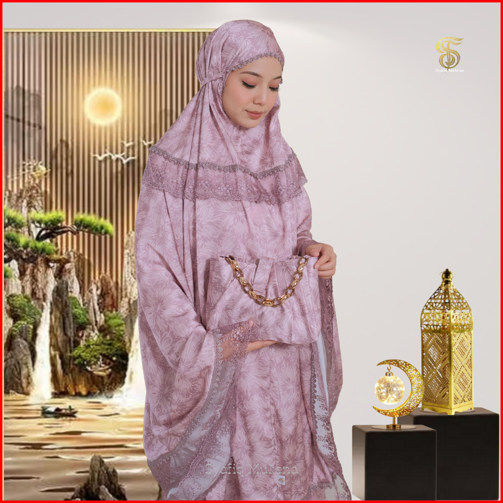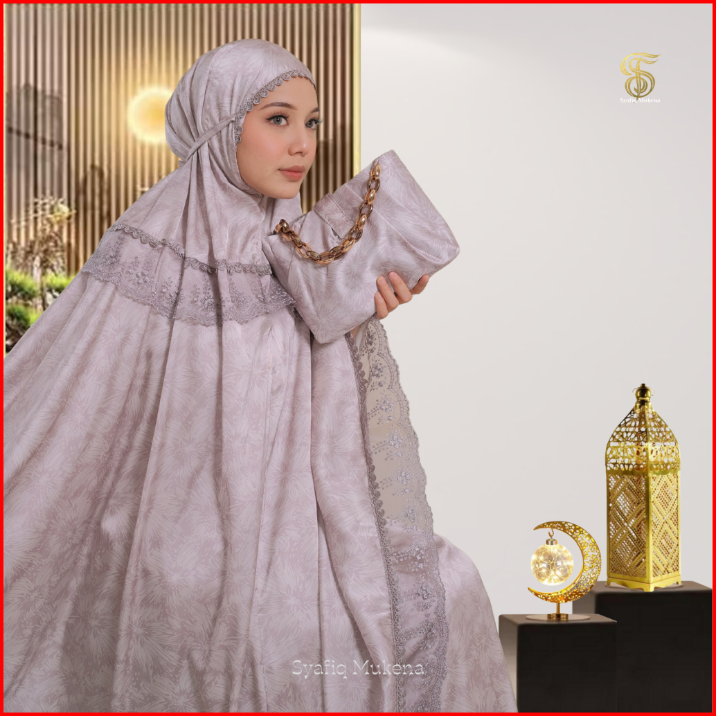 Syafiq Mukena Dewasa Armanii Silk Motif Putri Salju Glossy Premium Adem Lembut 2in1 Shahrila Series Syafiq