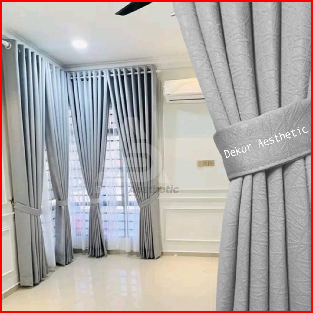 Gorden Blackout Polos Aesthetic Gorden Jendela Pintu Kamar Model Smokring 6 Gelombang Abu Tua Doff