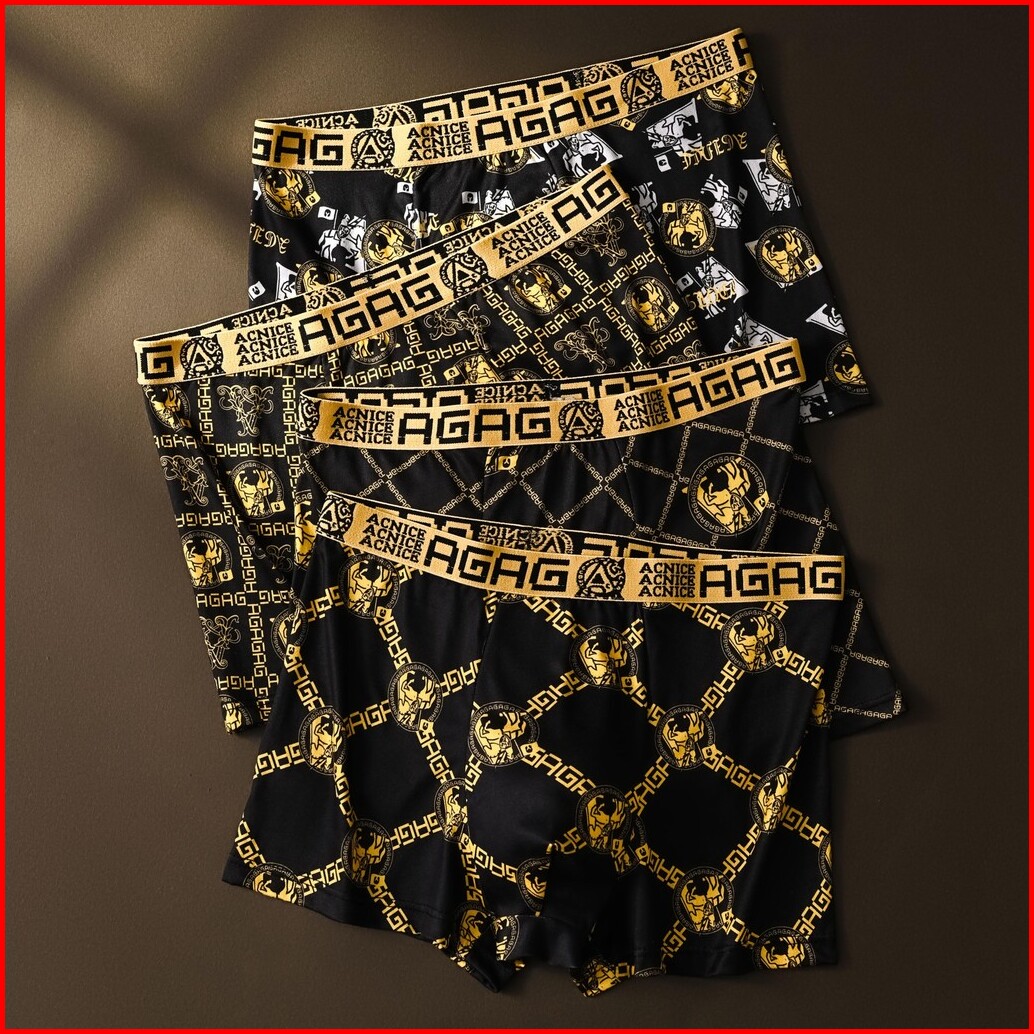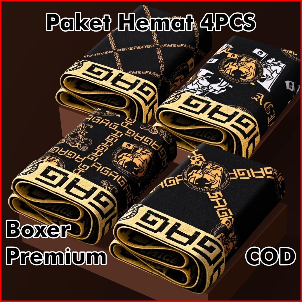 Paket 4 Pcs Celana Dalam Pria Boxer Motif Agag Lembut Adem Poliester Spandek Cdp211