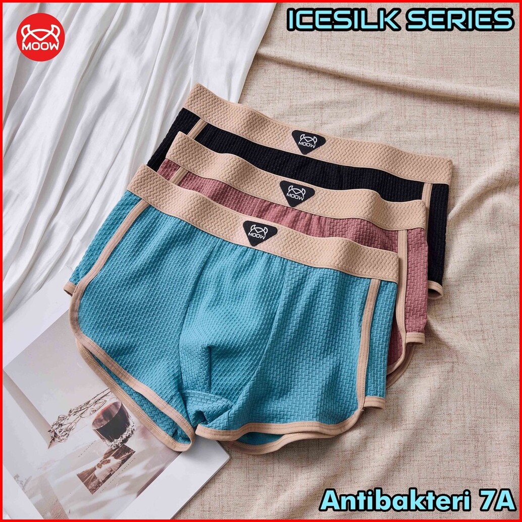 Moow Paket 3pcs Celana Dalam Boxer Pria Icesilk Premium Lembut Adem Antibakteri 7a Mp63