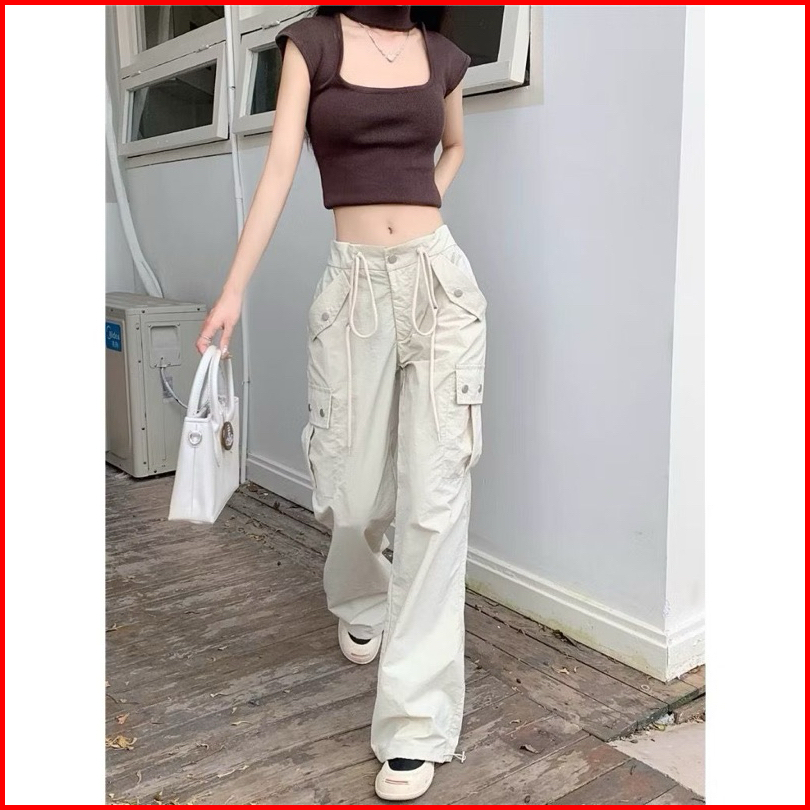 Lily Cargo - Celana Panjang Cargo Wanita Highwaist Loose Pants Korean Jumbo