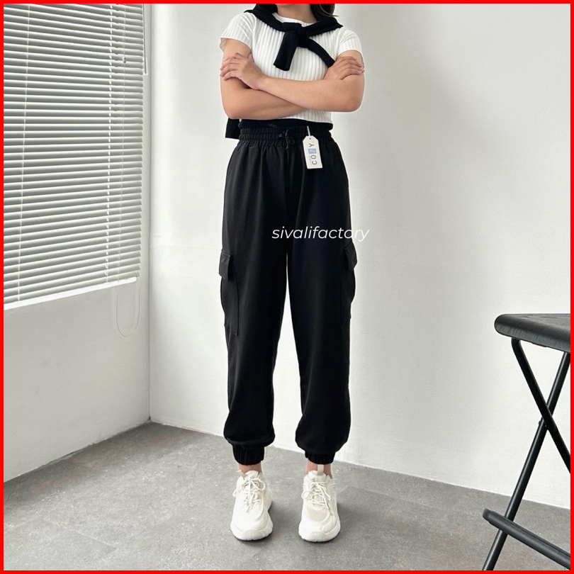 Celana Jogger Kargo Cargo Panjang Wanita Bahan Tebal Premium Katun Fleece
