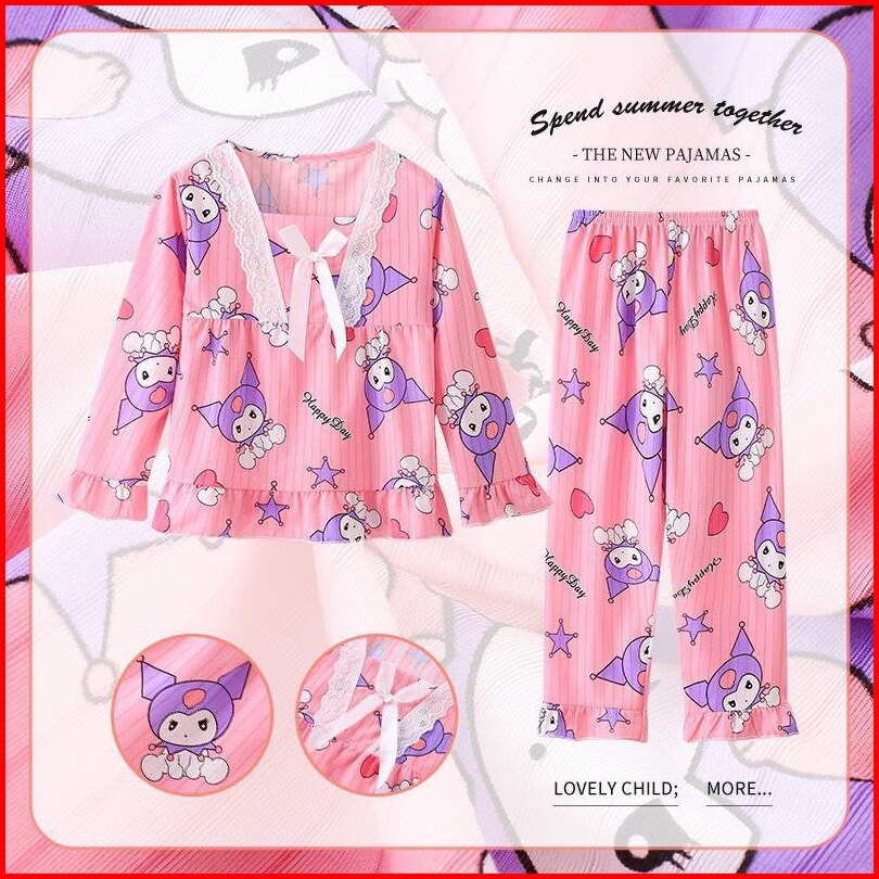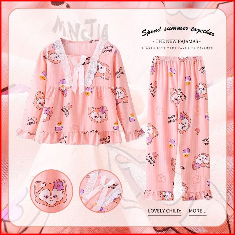 Ap3 Setelan Baju Tidur Piyama Anak Wanita Perempuan Lengan Panjang Kartun Import