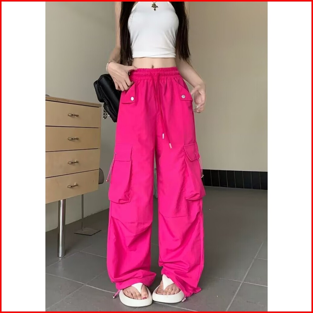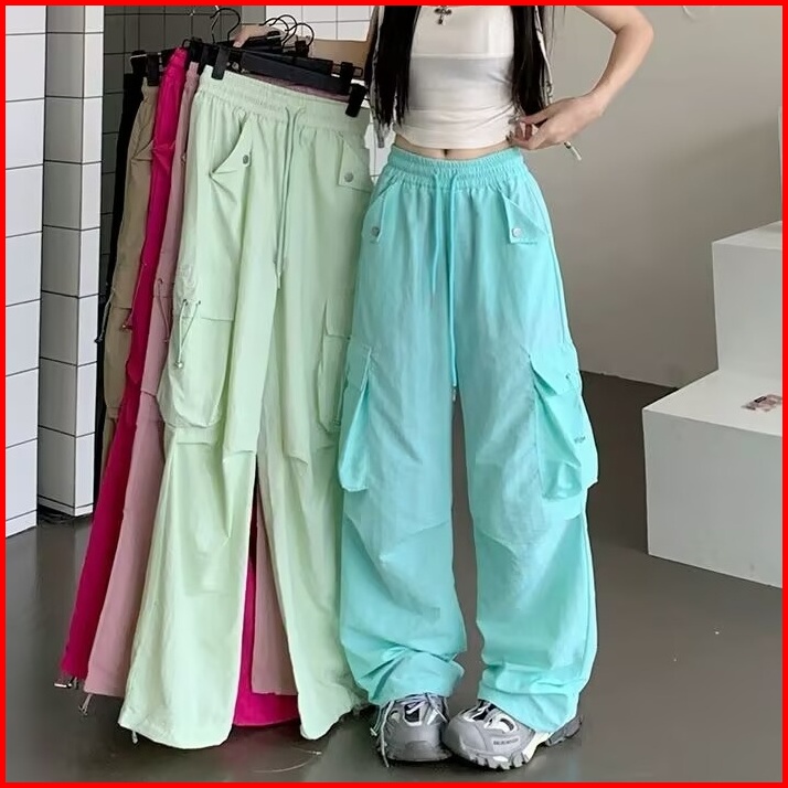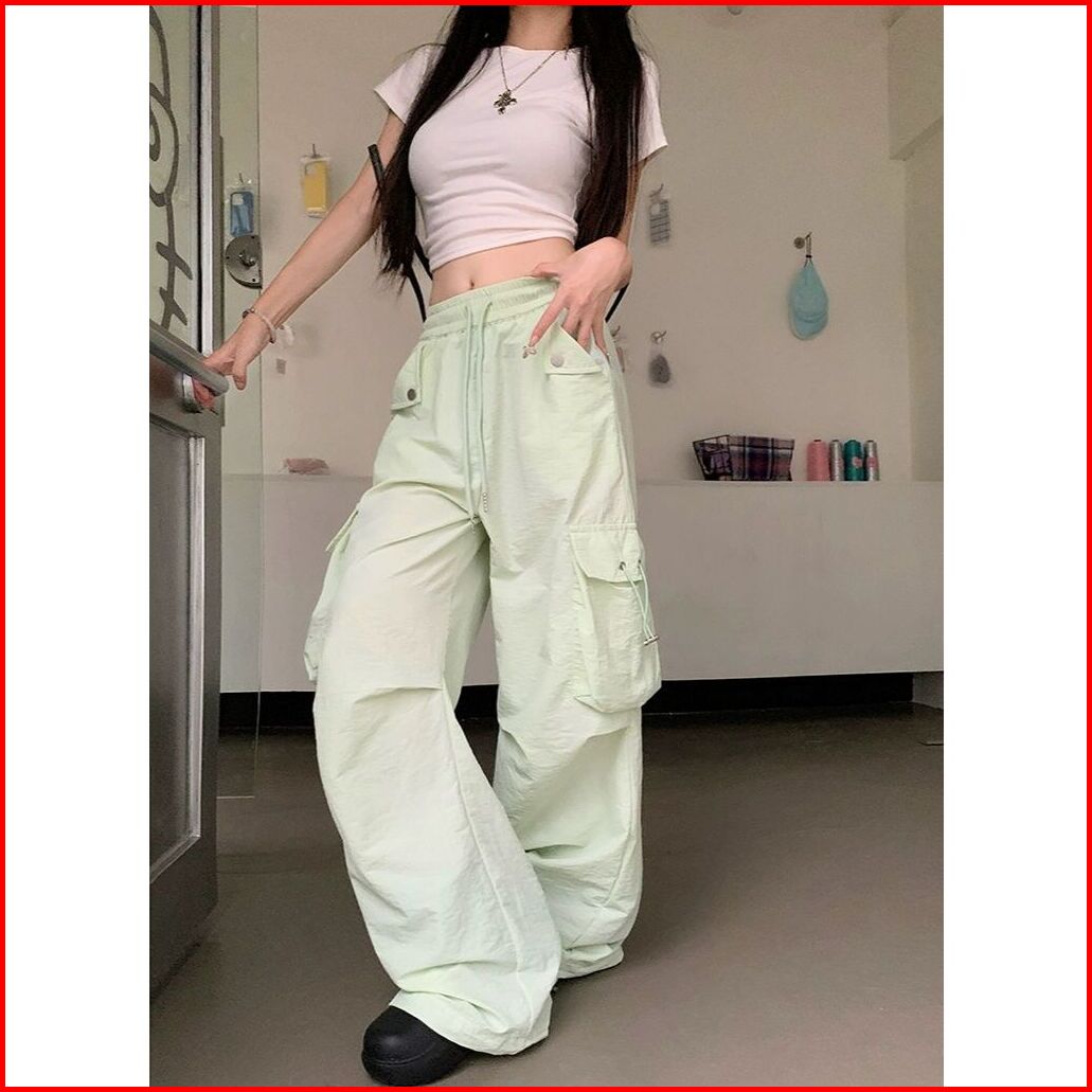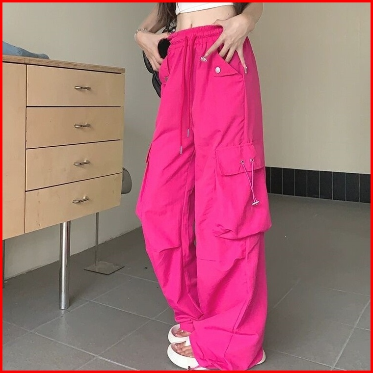 Celana Kargo Pinggang Tinggi Ukuran Besar S-4xl Untuk Wanita Celana Baggy Kaki Lebar