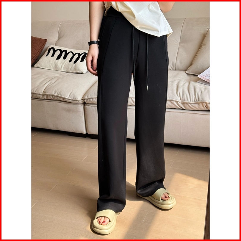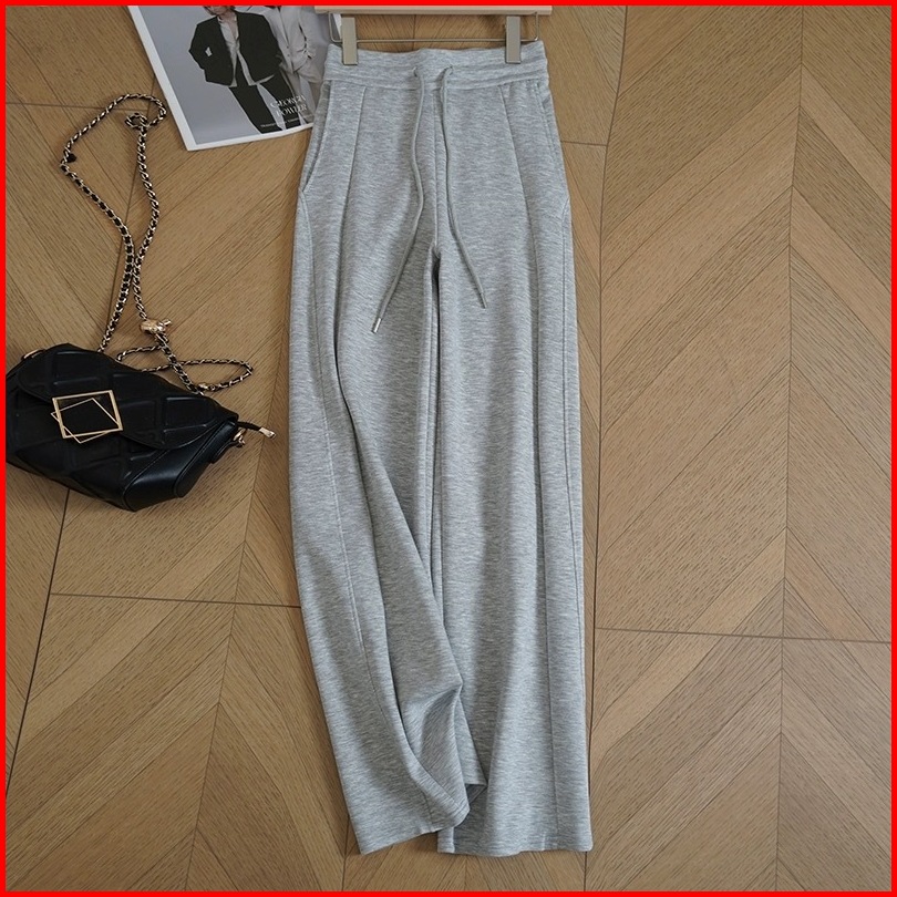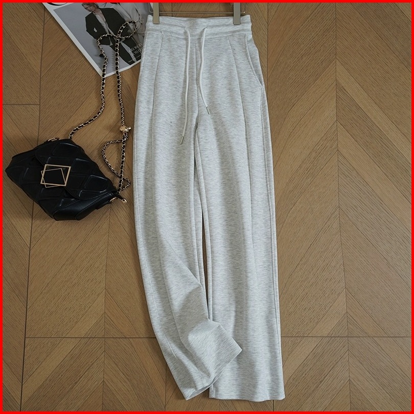 Celana Lurus Serut Pinggang Tinggi Retro Amerika Abu-abu Muda Celana Lebar Longgar Wanita Gaya Korea